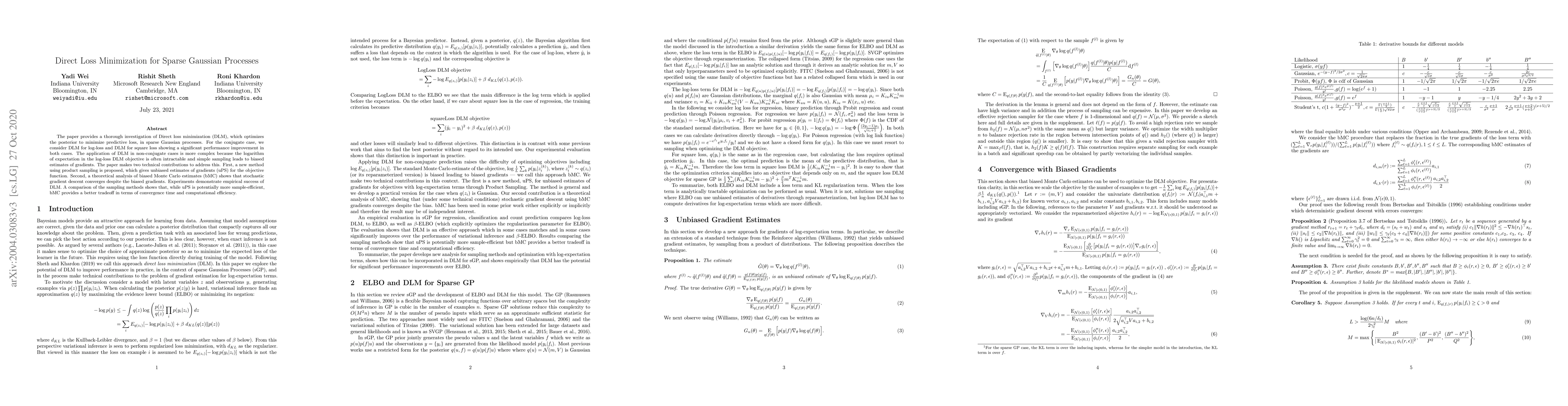 This paper investigates Direct loss minimization (DLM) in sparse Gaussian processes, showing significant performance improvements for conjugate cases. It introduces a new product sampling method (uPS) for unbiased gradient estimates and a theoretical analysis of biased Monte Carlo estimates (bMC) for non-conjugate cases, demonstrating empirical success and comparing the efficiency of the sampling methods.