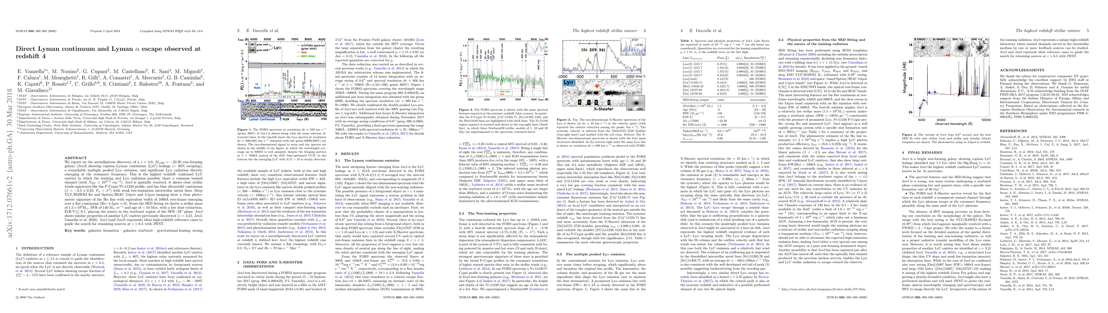 This paper reports on the discovery of a high-redshift galaxy (Ion3) at z=4.0 with significant Lyman continuum leakage (~60%) and multiple peaked Lyman-alpha emission, providing insights into reionization sources. The galaxy shows clear stellar wind signatures and low dust extinction, suggesting it is a starburst with a young stellar population.