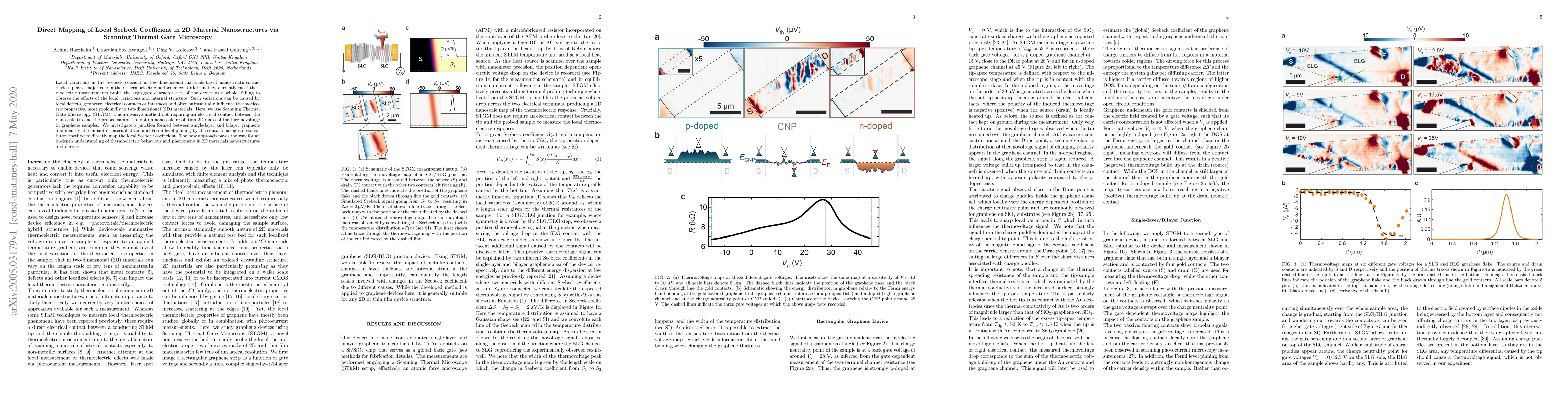 This paper employs Scanning Thermal Gate Microscopy (STGM) to create nanoscale maps of the local Seebeck coefficient in graphene nanostructures, revealing the impact of internal strain and Fermi level pinning. The method provides insights into thermoelectric properties in 2D materials, overcoming limitations of bulk measurements.
