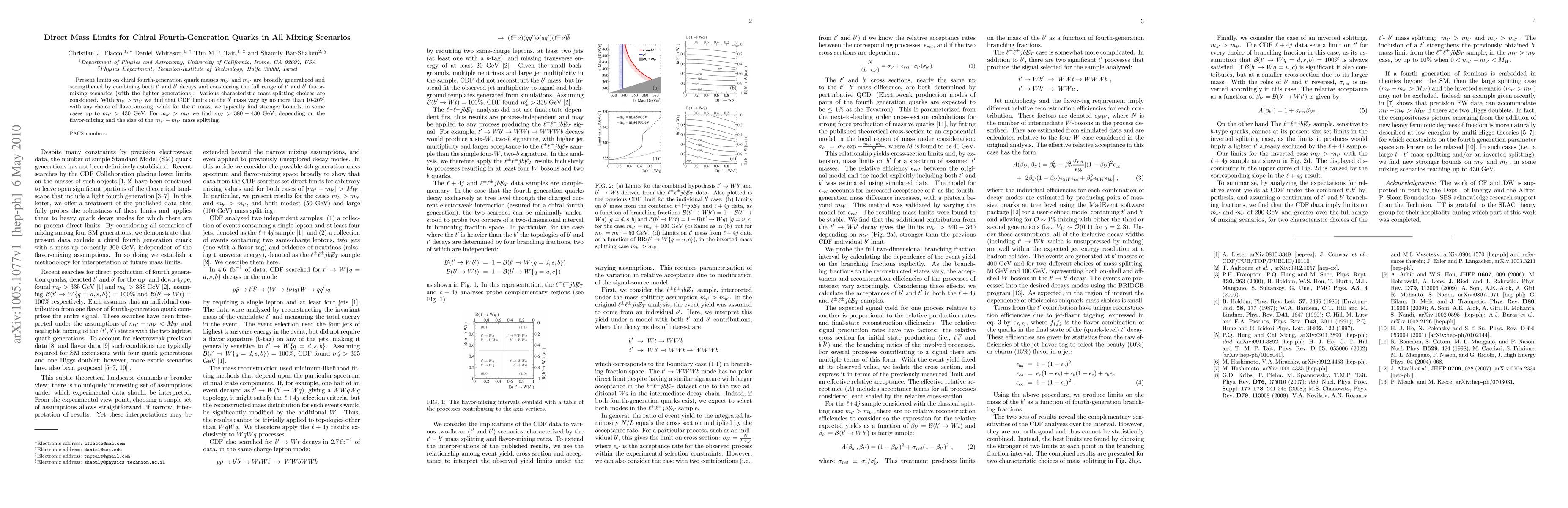Present limits on chiral fourth-generation quark masses $m_{b'}$ and $m_{t'}$ are broadly generalized and strengthened by combining both $t'$ and $b'$ decays and considering the full range of $t'$ and $b'$ flavor-mixing scenarios (with the lighter generations). Various characteristic mass-splitting choices are considered. With $m_{t'} > m_{b'}$ we find that CDF limits on the $b'$ mass vary by no more than 10-20% with any choice of flavor-mixing, while for the $t'$ mass, we typically find stronger bounds, in some cases up to $m_{t'} > 430$ GeV. For $m_{b'} > m_{t'}$ we find $m_{b'} > 380 - 430$ GeV, depending on the flavor-mixing and the size of the $m_{t'} - m_{b'}$ mass splitting.