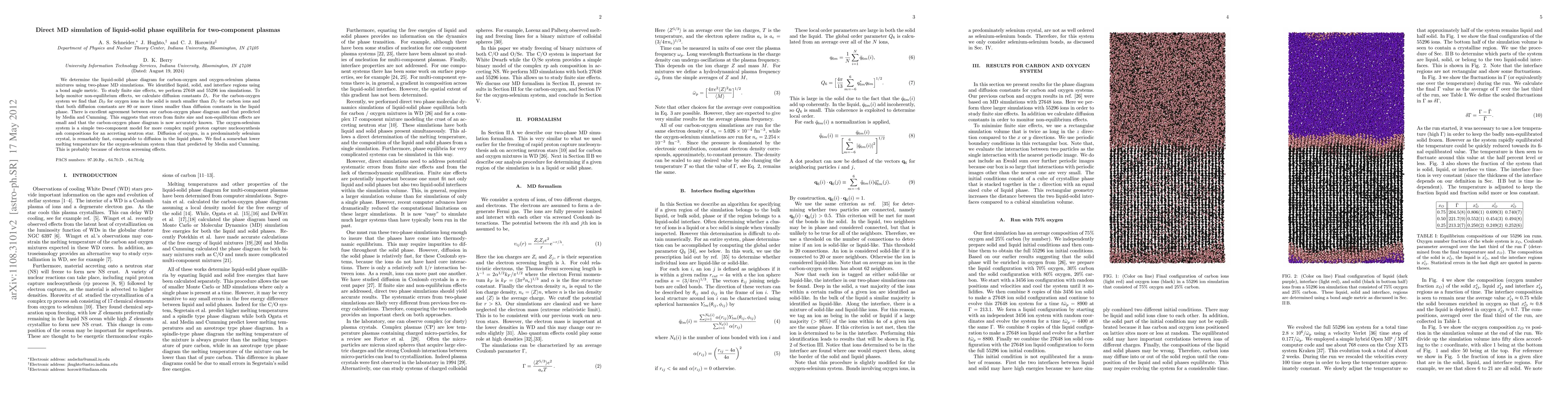 This paper uses molecular dynamics simulations to determine the liquid-solid phase diagrams for carbon-oxygen and oxygen-selenium plasma mixtures, revealing significant differences in diffusion constants between solid and liquid phases. The carbon-oxygen phase diagram aligns well with previous predictions, suggesting minimal errors from finite size and non-equilibrium effects.