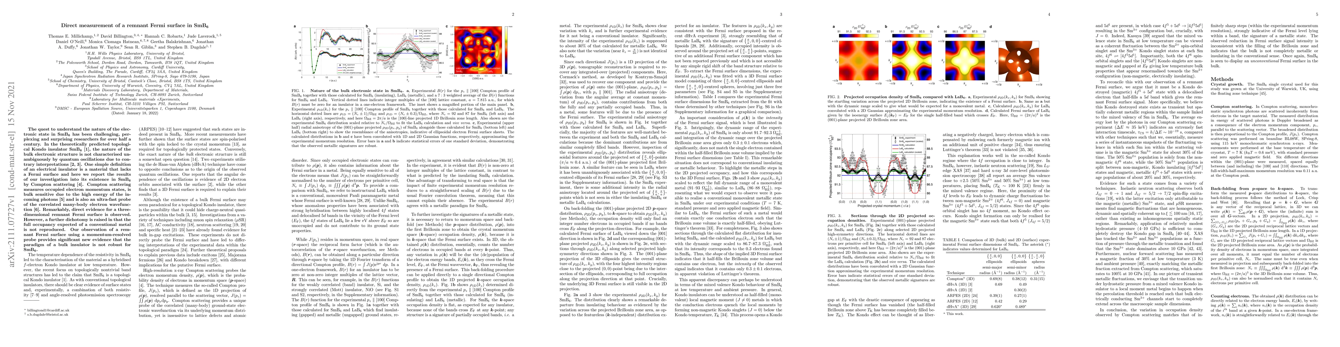 The quest to understand the nature of the electronic state in SmB6 has been challenging, perplexing and surprising researchers for over half a century. In the theoretically predicted topological Kondo insulator SmB6, the nature of the bulk electronic structure is not characterised unambiguously by quantum oscillations due to contrary interpretations. One simple definition of an electrical insulator is a material that lacks a Fermi surface and here we report the results of our investigation into its existence in SmB6 by Compton scattering. Compton scattering measures occupied electron momentum states, is bulk sensitive due to the high energy of the incoming photons and is also an ultra-fast probe of the correlated many-body electron wavefunction. Remarkably, direct evidence for a three-dimensional remnant Fermi surface is observed. However, a further dichotomy is raised in that the full occupancy expected of a conventional metal is not reproduced. Our observation of a remnant Fermi surface using a momentum-resolved probe provides significant new evidence that the paradigm of a bulk insulator is not robust for SmB6.