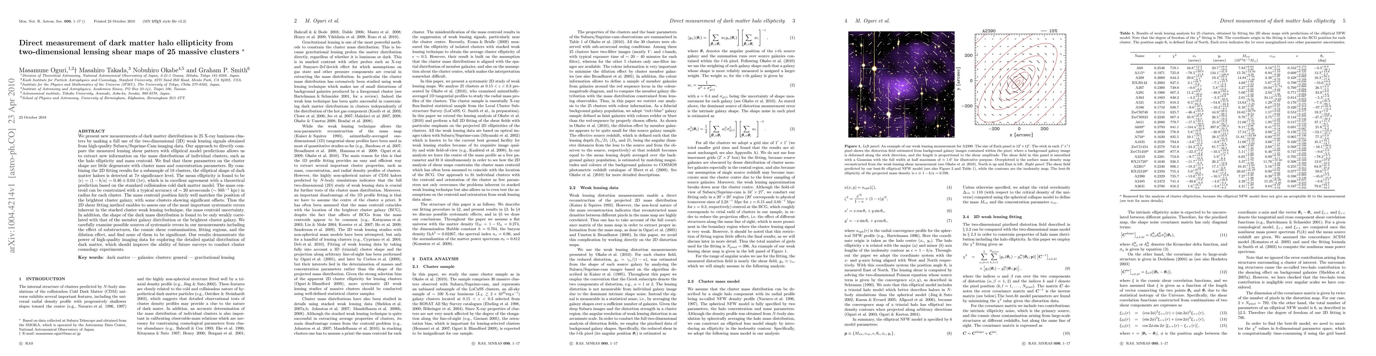 This study measures dark matter halo ellipticity in 25 massive clusters using Subaru/Suprime-Cam imaging data and 2D weak lensing. The analysis reveals a mean ellipticity of e = 0.46 ± 0.04, consistent with predictions, and detects the elliptical shape of dark matter halos at 7σ significance, highlighting the potential of high-quality imaging for detailed dark matter studies.