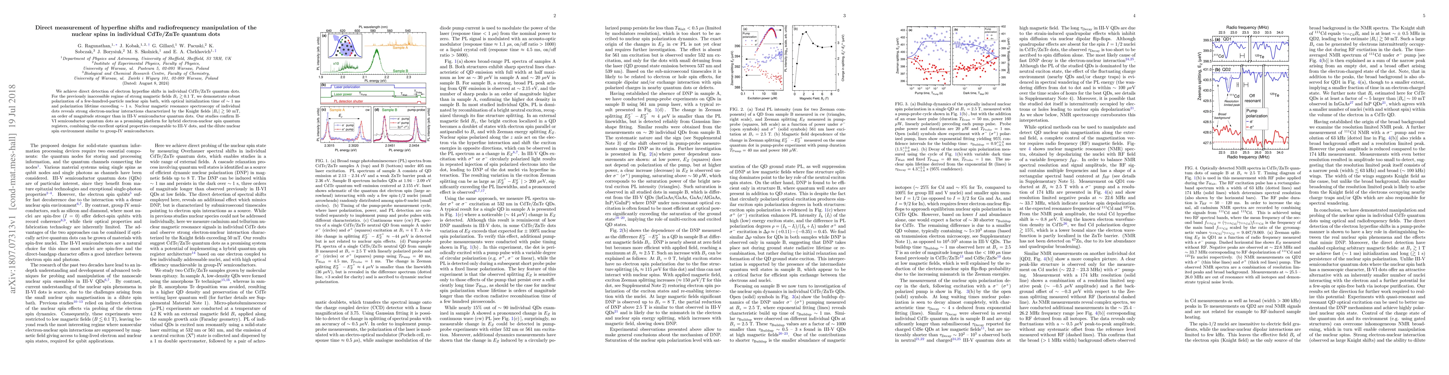 This research paper reports the direct detection of electron hyperfine shifts in individual CdTe/ZnTe quantum dots, demonstrating robust polarization of nuclear spins under strong magnetic fields. The study highlights strong electron-nuclear interactions and confirms II-VI semiconductor quantum dots as a promising platform for hybrid electron-nuclear spin quantum registers.