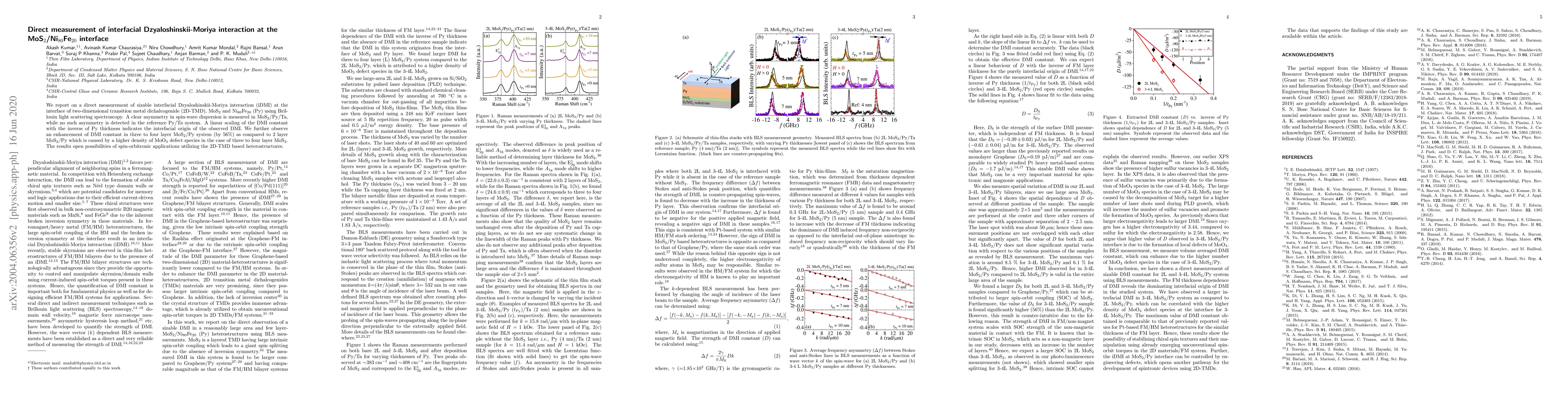 This study directly measures the interfacial Dzyaloshinskii-Moriya interaction (iDMI) at the MoS$_2$/Ni$_{80}$Fe$_{20}$ interface using Brillouin light scattering spectroscopy, revealing an asymmetry in spin-wave dispersion indicative of iDMI. The observed DMI enhancement in thicker MoS$_2$ layers is attributed to higher MoO$_3$ defect densities, suggesting potential for spin-orbitronic applications.