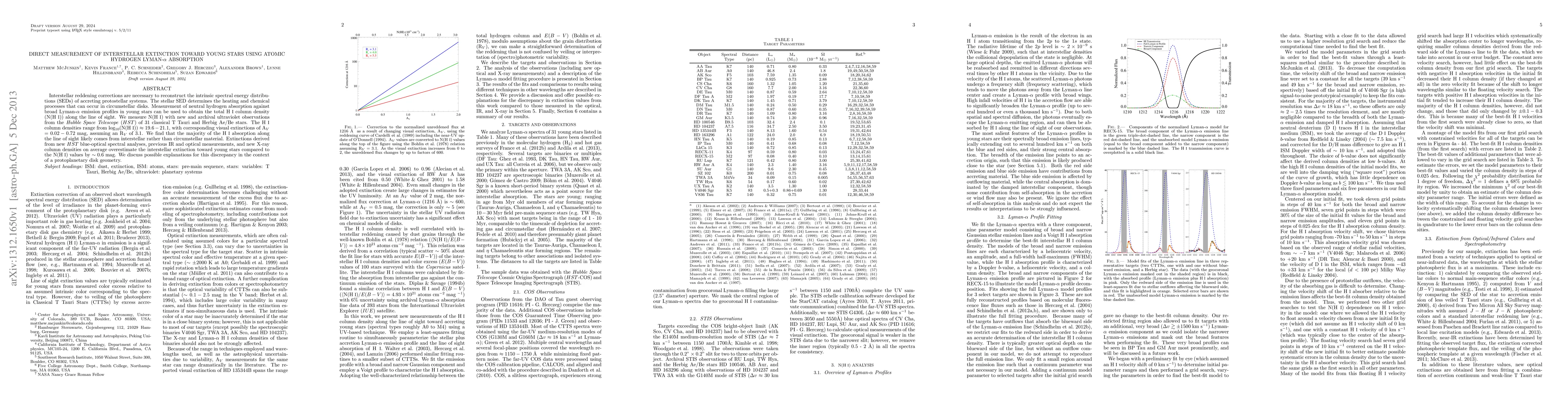 This paper measures interstellar extinction toward young stars using Lyman-$\alpha$ absorption from atomic hydrogen, finding H I column densities ranging from log$_{10}$(N(H I)) $\approx 19.6 - 21.1$. The derived visual extinctions are generally lower than those from other methods, suggesting a discrepancy likely due to protoplanetary disk geometry.