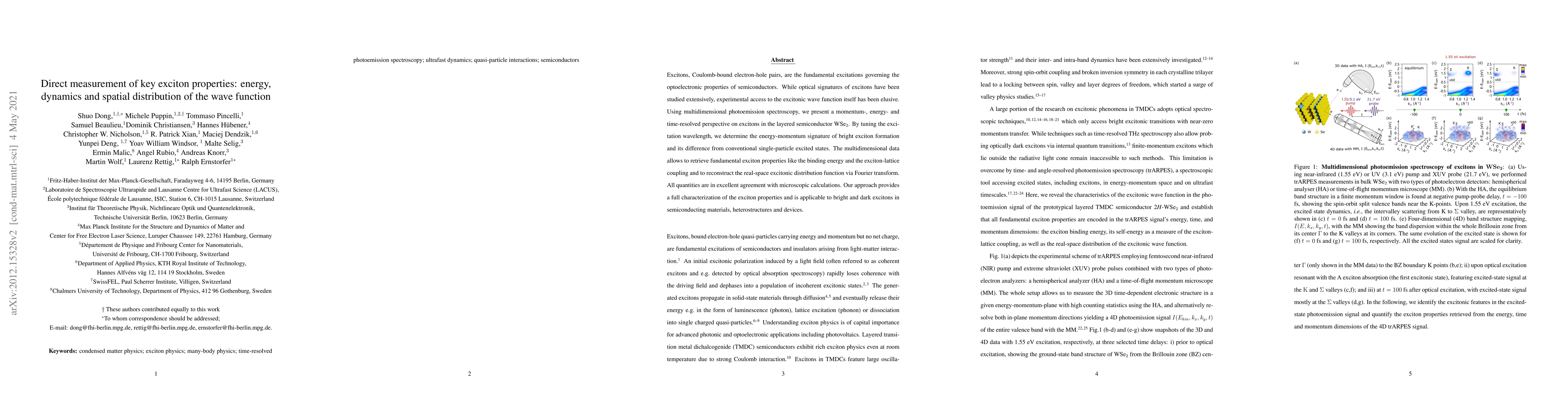 Excitons, Coulomb-bound electron-hole pairs, are the fundamental excitations governing the optoelectronic properties of semiconductors. While optical signatures of excitons have been studied extensively, experimental access to the excitonic wave function itself has been elusive. Using multidimensional photoemission spectroscopy, we present a momentum-, energy- and time-resolved perspective on excitons in the layered semiconductor WSe$_2$. By tuning the excitation wavelength, we determine the energy-momentum signature of bright exciton formation and its difference from conventional single-particle excited states. The multidimensional data allows to retrieve fundamental exciton properties like the binding energy and the exciton-lattice coupling and to reconstruct the real-space excitonic distribution function via Fourier transform. All quantities are in excellent agreement with microscopic calculations. Our approach provides a full characterization of the exciton properties and is applicable to bright and dark excitons in semiconducting materials, heterostructures and devices.