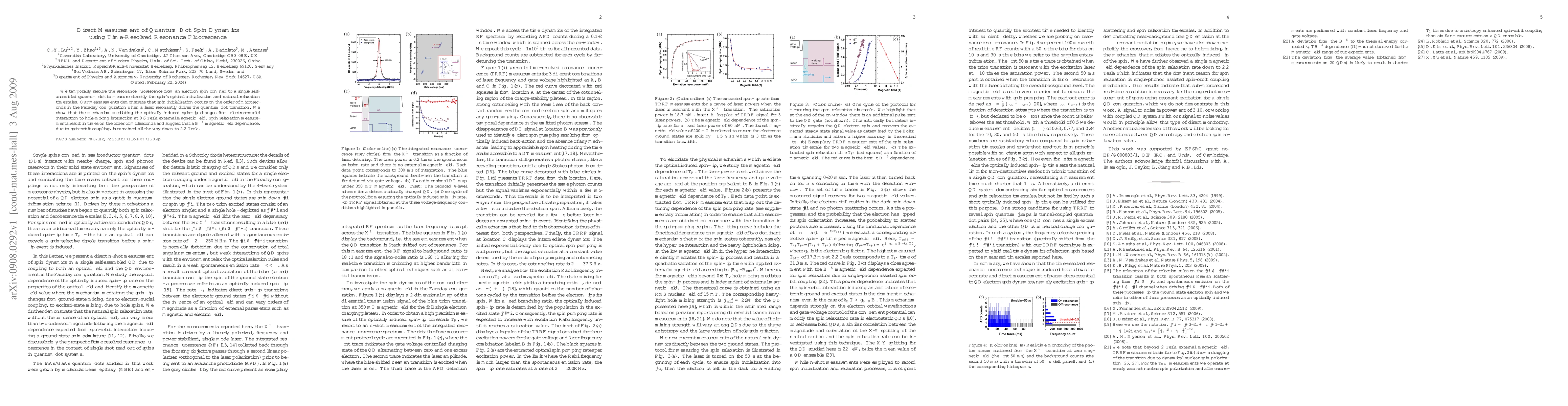 We temporally resolve the resonance fluorescence from an electron spin confined to a single self-assembled quantum dot to measure directly the spin's optical initialization and natural relaxation timescales. Our measurements demonstrate that spin initialization occurs on the order of microseconds in the Faraday configuration when a laser resonantly drives the quantum dot transition. We show that the mechanism mediating the optically induced spin-flip changes from electron-nuclei interaction to hole-mixing interaction at 0.6 Tesla external magnetic field. Spin relaxation measurements result in times on the order of milliseconds and suggest that a $B^{-5}$ magnetic field dependence, due to spin-orbit coupling, is sustained all the way down to 2.2 Tesla.