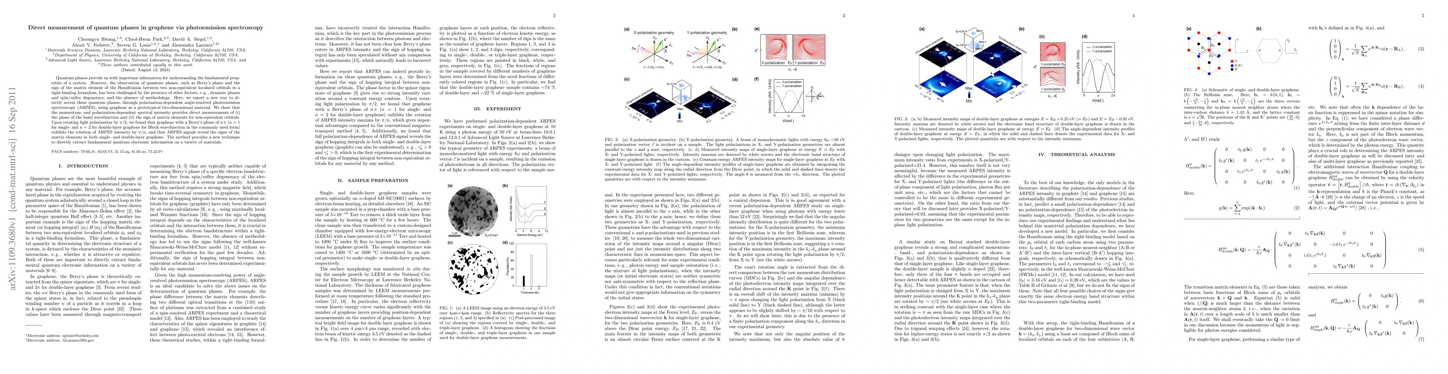 ARPES is used to directly measure quantumphases such as Berry's phase of specific electronic bands in graphene.