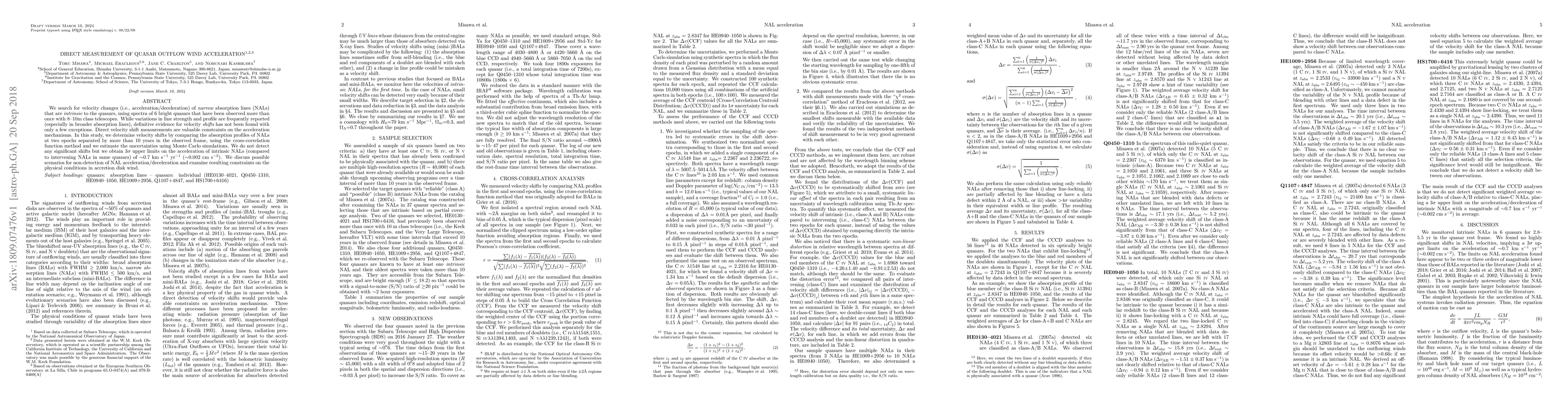 This study examines quasar outflow wind acceleration using spectra of 6 bright quasars observed multiple times over more than a decade. Employing cross-correlation function method, no significant velocity shifts were detected, yielding upper limits of ~0.7 km/s^-1 yr^-1 (~0.002 cm s$^{-2}$) for intrinsic narrow absorption lines (NALs) acceleration. The findings impose constraints on physical conditions in accretion disk winds.