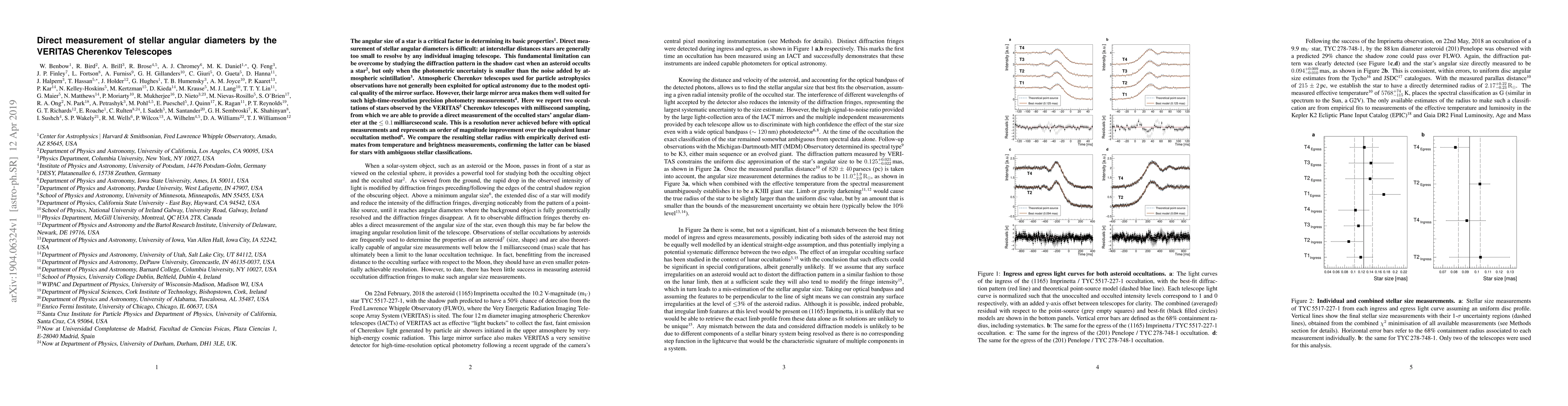 This paper reports the first direct measurements of stellar angular diameters using VERITAS Cherenkov telescopes, achieving unprecedented resolution of $\leq0.1$ milliarcseconds through millisecond sampling of asteroid occultations, and confirms that empirical estimates from temperature and brightness can be biased.