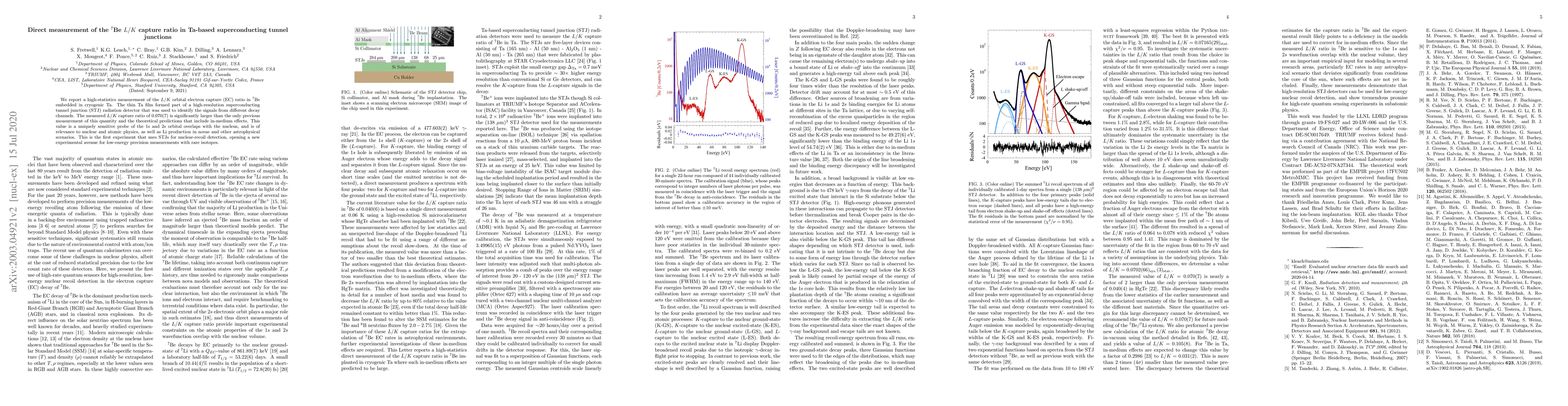 This study reports a high-statistics measurement of the $^7$Be $L/K$ orbital electron capture ratio in Ta-based superconducting tunnel junctions, revealing a significantly larger ratio than previous measurements and theoretical predictions. This new value enhances understanding of nuclear and atomic physics, and has implications for Li production in astrophysical events.