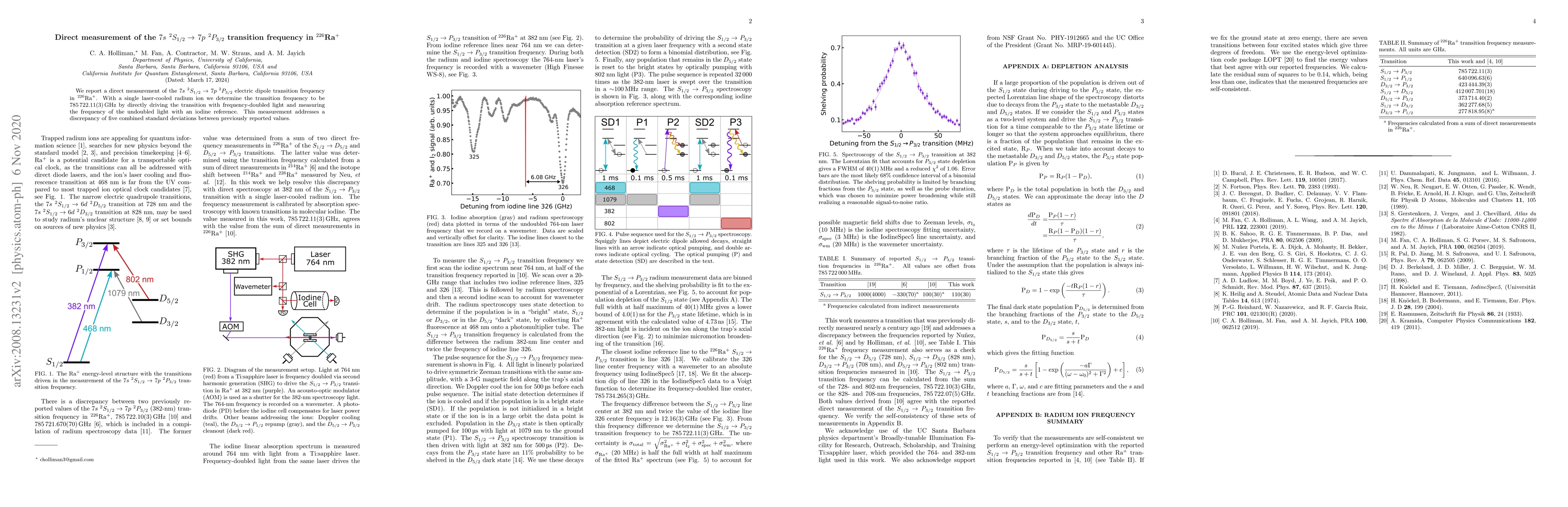 This research directly measures the transition frequency of $7s\ ^2S_{1/2}\rightarrow 7p\ ^2P_{3/2}$ in $^{226}$Ra$^{+}$ at 785722.11(3) GHz using a laser-cooled ion and an iodine reference, resolving a previous discrepancy of five standard deviations.