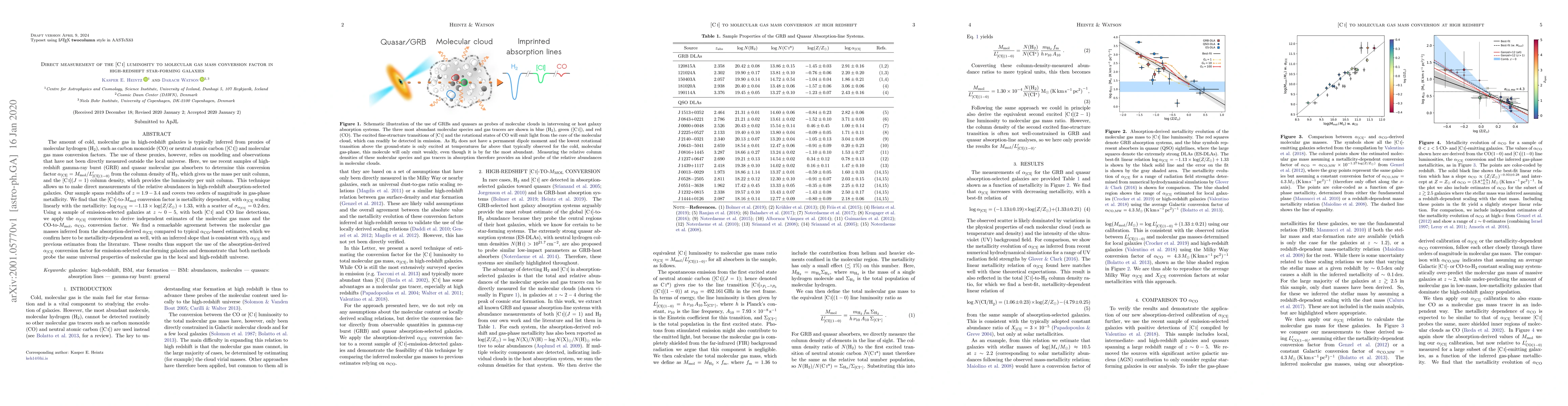 This research directly measures the [CI] luminosity to molecular gas mass conversion factor in high-redshift star-forming galaxies using gamma-ray burst and quasar molecular gas absorbers. The study finds that the conversion factor scales linearly with metallicity, supporting the use of [CI] as a reliable proxy for molecular gas mass in both high-redshift and local star-forming galaxies.