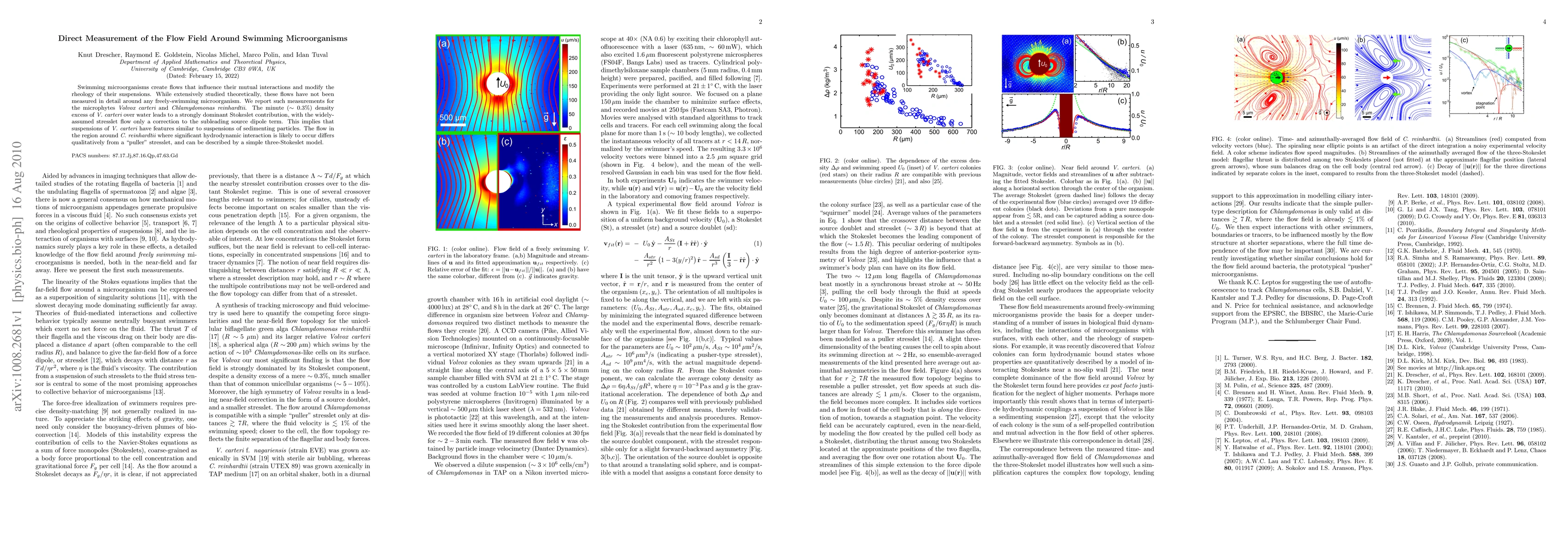 This study directly measures the flow field around swimming microorganisms, revealing that Volvox carteri's flow is dominated by a Stokeslet contribution, similar to sedimenting particles, while Chlamydomonas reinhardtii's flow is best described by a three-Stokeslet model.