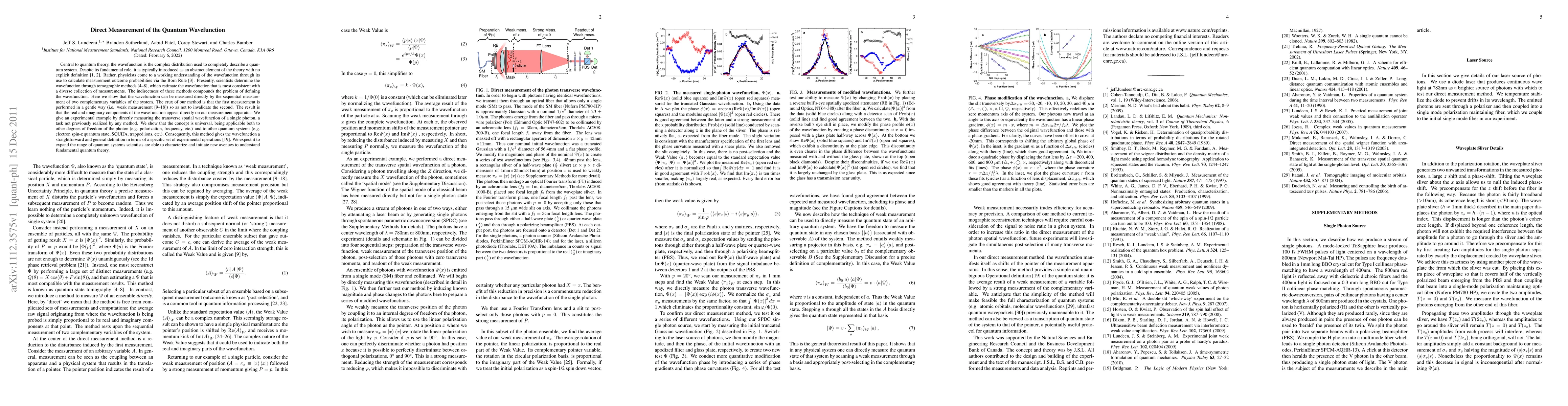 This paper presents a novel method for directly measuring the quantum wavefunction by sequentially measuring two complementary variables, with the first measurement performed weakly to preserve the second. This approach allows for the direct visualization of the wavefunction's real and imaginary components, exemplified by measuring the spatial wavefunction of a single photon, and is shown to be universally applicable to various quantum systems.