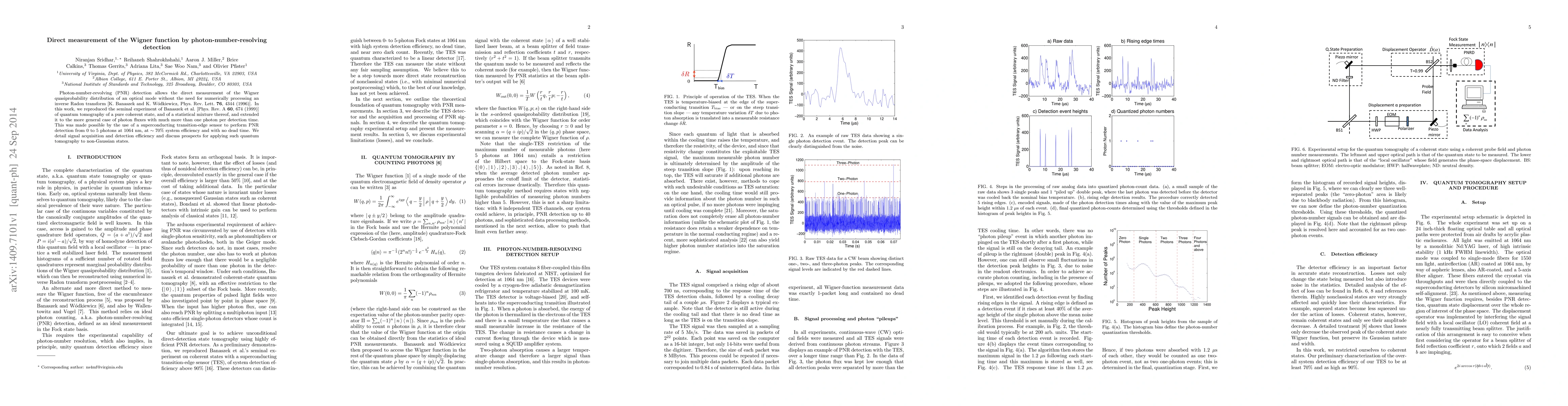This paper details the use of photon-number-resolving detection with superconducting sensors to directly measure the Wigner function of optical modes, extending the method to higher photon fluxes. The experiment replicates and improves upon previous quantum tomography techniques, paving the way for applications to non-Gaussian quantum states.