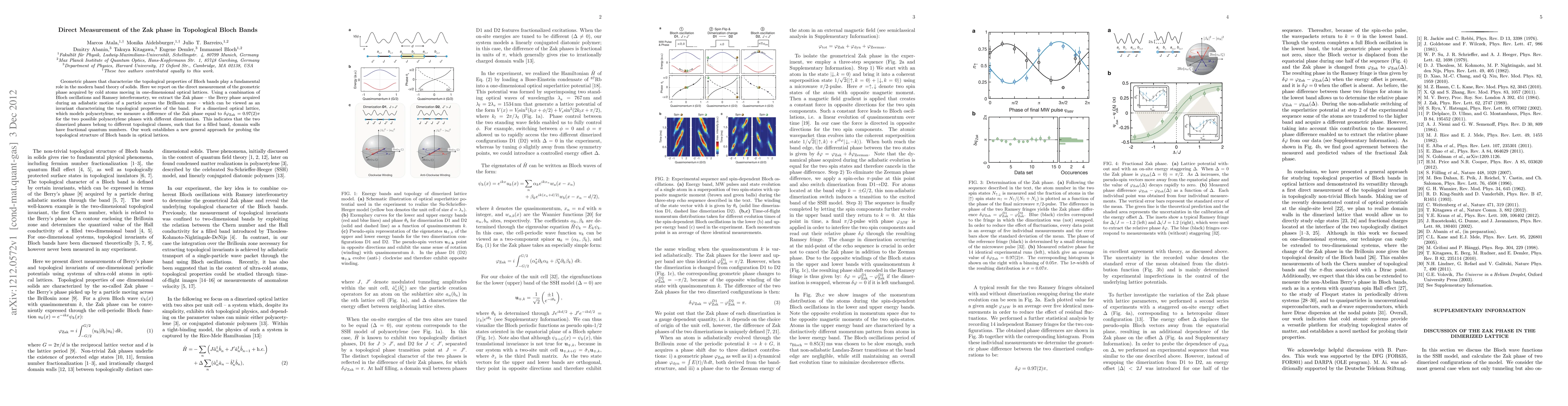 This work demonstrates a novel method for extracting the Zak phase difference using Ramsey fringe measurements.