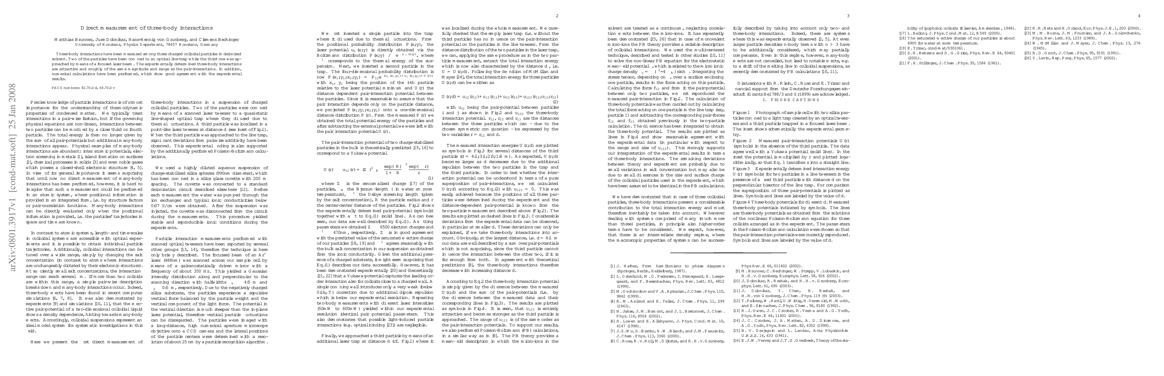 This research measures attractive three-body interactions among charged colloidal particles in a deionized solvent, using optical trapping to confine two particles and a focused laser to approach the third. Experimental results align well with corresponding numerical calculations.