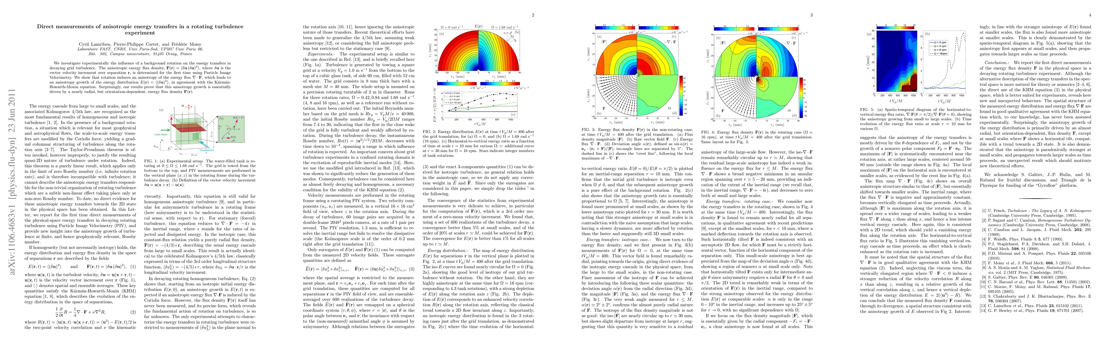 This study experimentally measures the anisotropic energy transfers in decaying grid turbulence under background rotation using Particle Image Velocimetry. It reveals that rotation induces an anisotropic energy flux, leading to an anisotropic growth in energy distribution, driven by a nearly radial, orientation-dependent energy flux density.