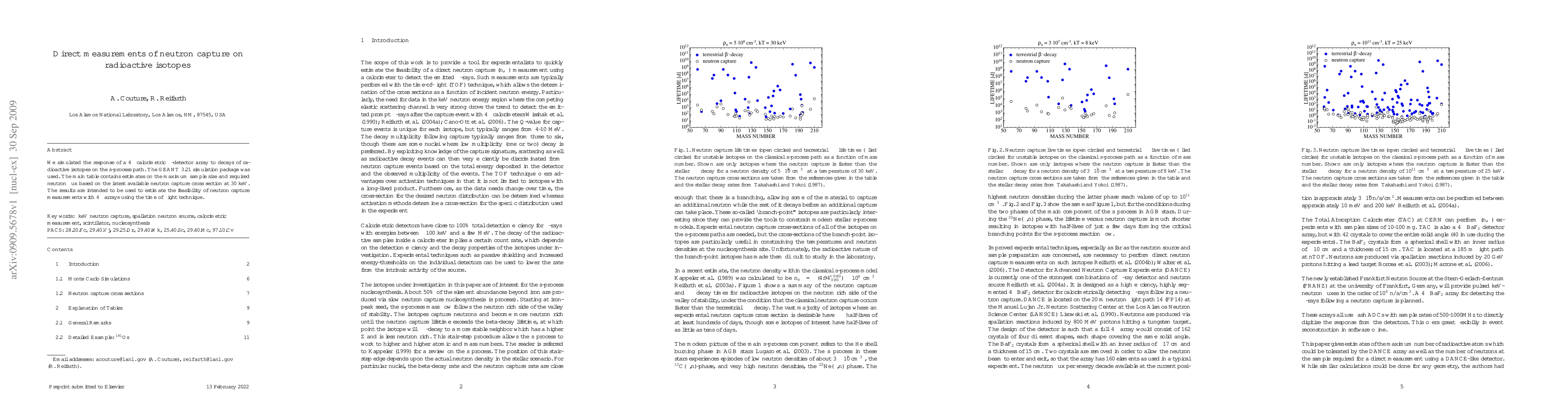We simulated the response of a 4p calorimetric g-detector array to decays of radioactive isotopes on the s-process path. The GEANT 3.21 simulation package was used. The main table contains estimates on the maximum sample size and required neutron flux based on the latest available neutron capture cross section at 30 keV. The results are intended to be used to estimate the feasibility of neutron capture measurements with 4p arrays using the time of flight technique.