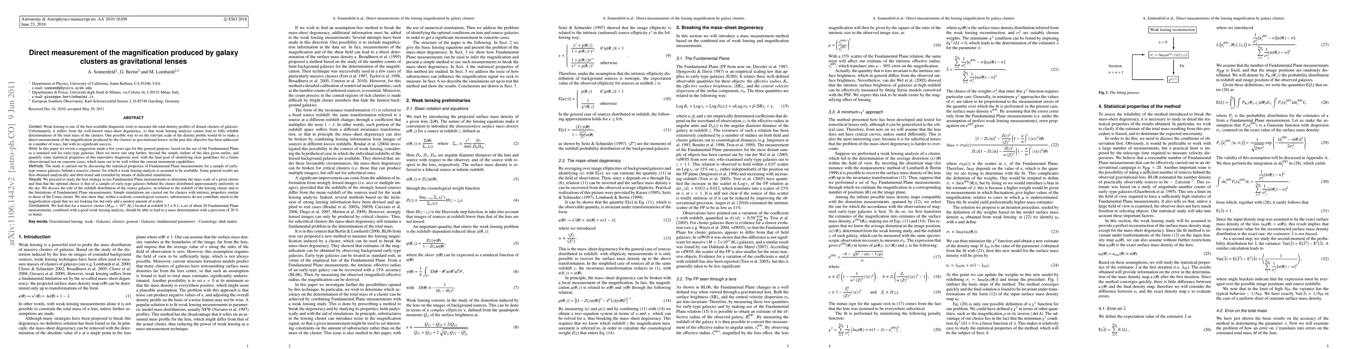 Weak lensing is one of the best available diagnostic tools to measure the total density profiles of distant clusters of galaxies. Unfortunately, it suffers from the well-known mass-sheet degeneracy, so that weak lensing analyses cannot lead to fully reliable determinations of the total mass of the clusters. One possible way to set the relevant scale of the density profile would be to make a direct measurement of the magnification produced by the clusters as gravitational lenses. In this paper we revisit a suggestion made a few years ago for this general purpose, based on the use of the Fundamental Plane as a standard rod for early-type galaxies. Here we move one step further, beyond the simple outline of the idea given earlier, and quantify some statistical properties of this innovative diagnostic tool, with the final goal of identifying clear guidelines for a future observational test on concrete cases, which turns out to be well within the current instrument capabilities. The study is carried out by discussing the statistical properties of Fundamental Plane measurements for a sample of early-type source galaxies behind a massive cluster, for which a weak lensing analysis is assumed to be available. We proceed to study the best strategy to use Fundamental Plane measurements to determine the mass scale of a given cluster and find that the optimal choice is that of a sample of early-type galaxies behind the cluster distributed approximately uniformly in the sky. We also show that substructures do not contribute much to the magnification signal that we are looking for, but only add a modest amount of scatter. We find that for a massive cluster (M > 10^15 M_Sun) located at redshift 0.3 +/- 0.1, a set of about 20 Fundamental Plane measurements, combined with a good weak lensing analysis, should be able to lead to a mass determination with a precision of 20% or better.