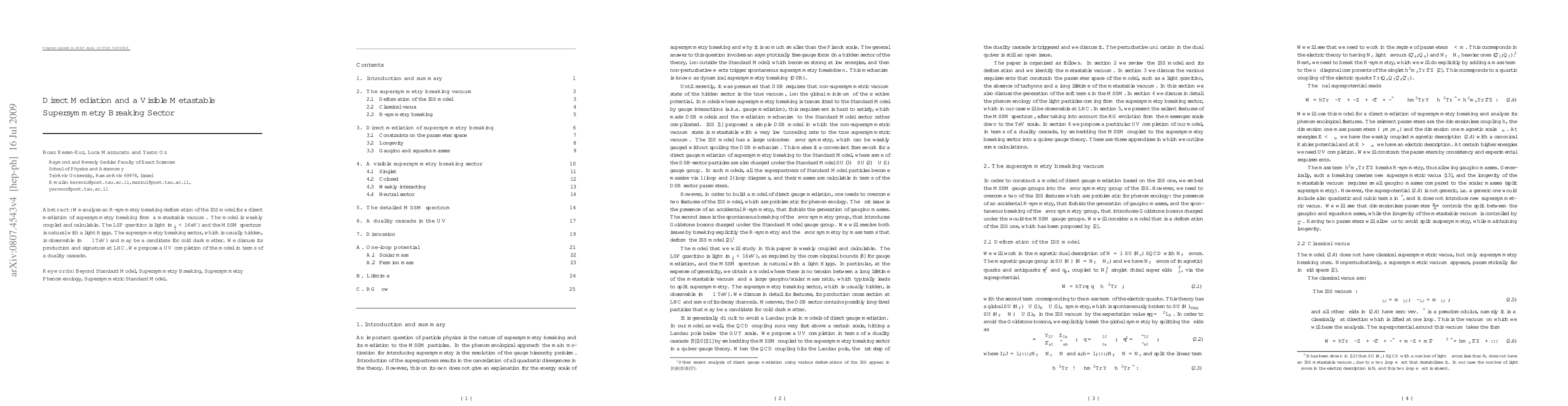 This paper explores a weakly coupled model where supersymmetry breaking is directly mediated from a metastable vacuum, featuring a light gravitino and a natural MSSM spectrum. The usually hidden supersymmetry breaking sector is made observable and may serve as cold dark matter, with potential signatures at the LHC. The model is completed via a duality cascade.