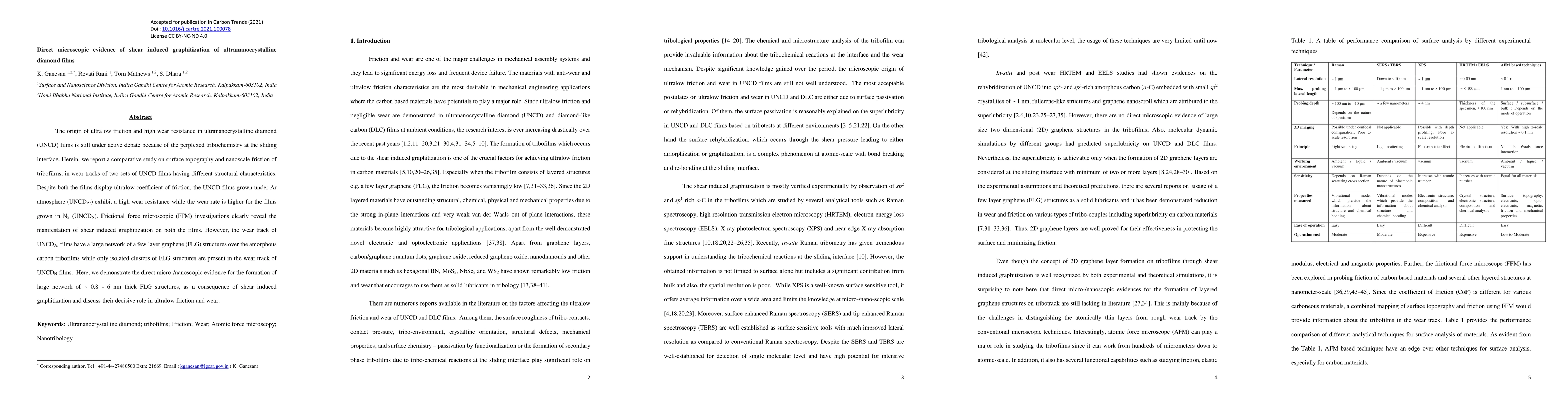 This study investigates the shear-induced graphitization in ultrananocrystalline diamond films, revealing that UNCD films grown under Ar atmosphere exhibit higher wear resistance due to a large network of few-layer graphene structures formed via shear-induced graphitization, contrasting with UNCD films grown in N2.