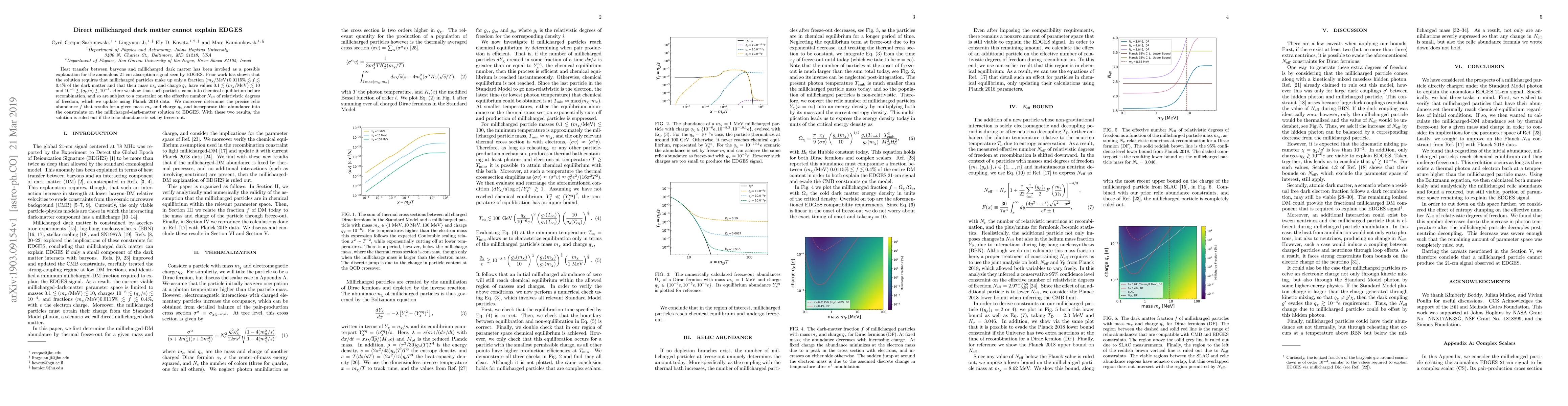 Heat transfer between baryons and millicharged dark matter has been invoked as a possible explanation for the anomalous 21-cm absorption signal seen by EDGES. Prior work has shown that the solution requires that millicharged particles make up only a fraction $(m_\chi/{\rm MeV})\ 0.0115\% \lesssim f \lesssim 0.4\%$ of the dark matter and that their mass $m_\chi$ and charge $q_\chi$ have values $0.1 \lesssim (m_\chi/{\rm MeV})\lesssim 10$ and $10^{-6} \lesssim (q_\chi/e)\lesssim 10^{-4}$. Here we show that such particles come into chemical equilibrium before recombination, and so are subject to a constraint on the effective number $N_{\rm eff}$ of relativistic degrees of freedom, which we update using Planck 2018 data. We moreover determine the precise relic abundance $f$ that results for a given mass $m_\chi$ and charge $q_\chi$ and incorporate this abundance into the constraints on the millicharged-dark-matter solution to EDGES. With these two results, the solution is ruled out if the relic abundance is set by freeze-out.