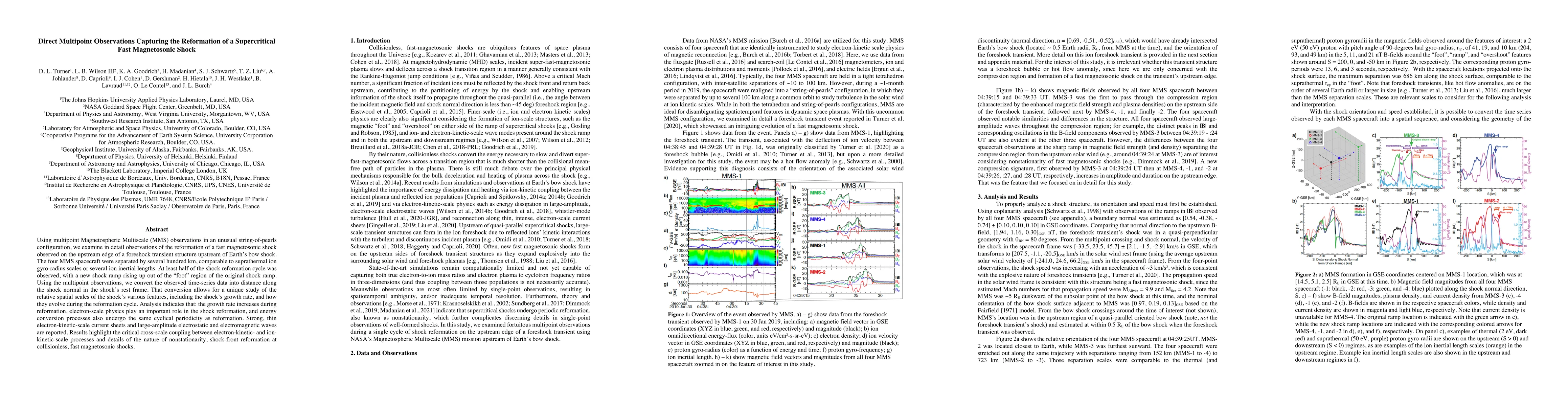 This study uses MMS multipoint observations to analyze the reformation of a fast magnetosonic shock near Earth's bow shock, revealing the growth rate increase and the role of electron-scale physics in shock reformation. The findings highlight the importance of cross-scale coupling between electron- and ion-kinetic-scale processes in the dynamic reformation cycle.