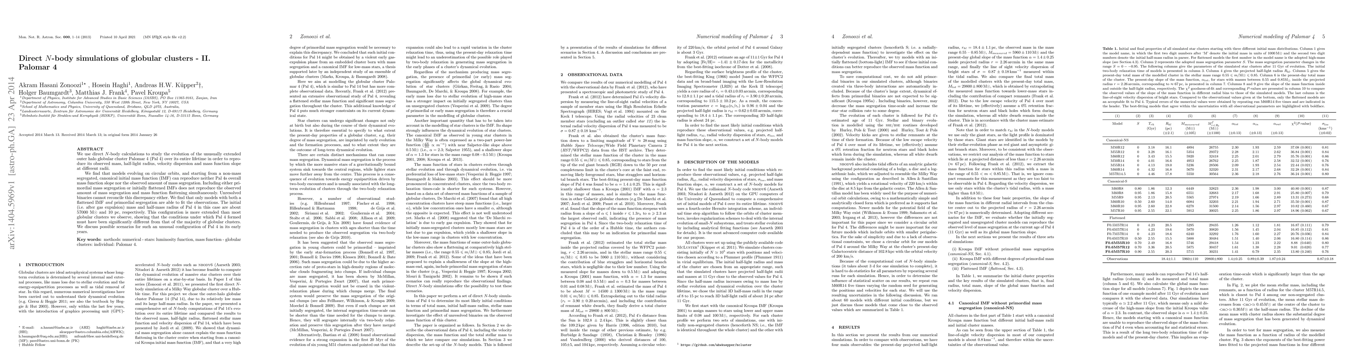 We use direct $N$-body calculations to study the evolution of the unusually extended outer halo globular cluster Palomar 4 (Pal~4) over its entire lifetime in order to reproduce its observed mass, half-light radius, velocity dispersion and mass function slope at different radii. We find that models evolving on circular orbits, and starting from a non-mass segregated, canonical initial mass function (IMF) can reproduce neither Pal 4's overall mass function slope nor the observed amount of mass segregation. Including either primordial mass segregation or initially flattened IMFs does not reproduce the observed amount of mass segregation and mass function flattening simultaneously. Unresolved binaries cannot reconcile this discrepancy either. We find that only models with both a flattened IMF and primordial segregation are able to fit the observations. The initial (i.e. after gas expulsion) mass and half-mass radius of Pal~4 in this case are about 57000 M${\odot}$ and 10 pc, respectively. This configuration is more extended than most globular clusters we observe, showing that the conditions under which Pal~4 formed must have been significantly different from that of the majority of globular clusters. We discuss possible scenarios for such an unusual configuration of Pal~4 in its early years.