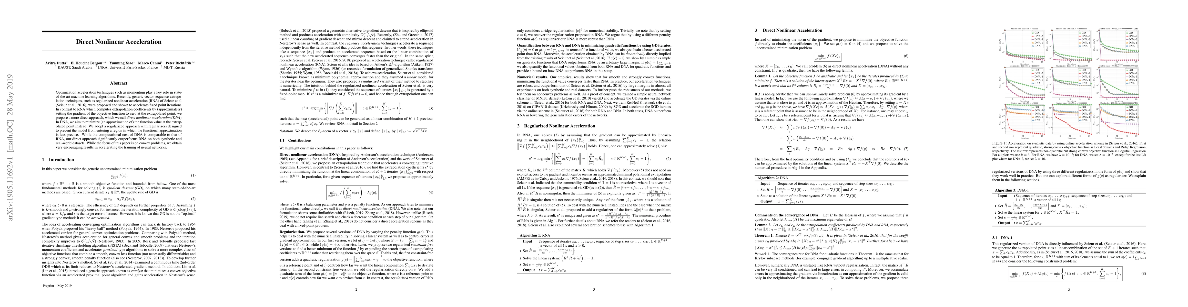 This paper proposes direct nonlinear acceleration (DNA) as an optimization technique that outperforms regularized nonlinear acceleration (RNA) by directly minimizing the function value at the extrapolated point, achieving better results on both synthetic and real-world datasets while maintaining comparable computational costs. The method shows promising results in accelerating neural network training.