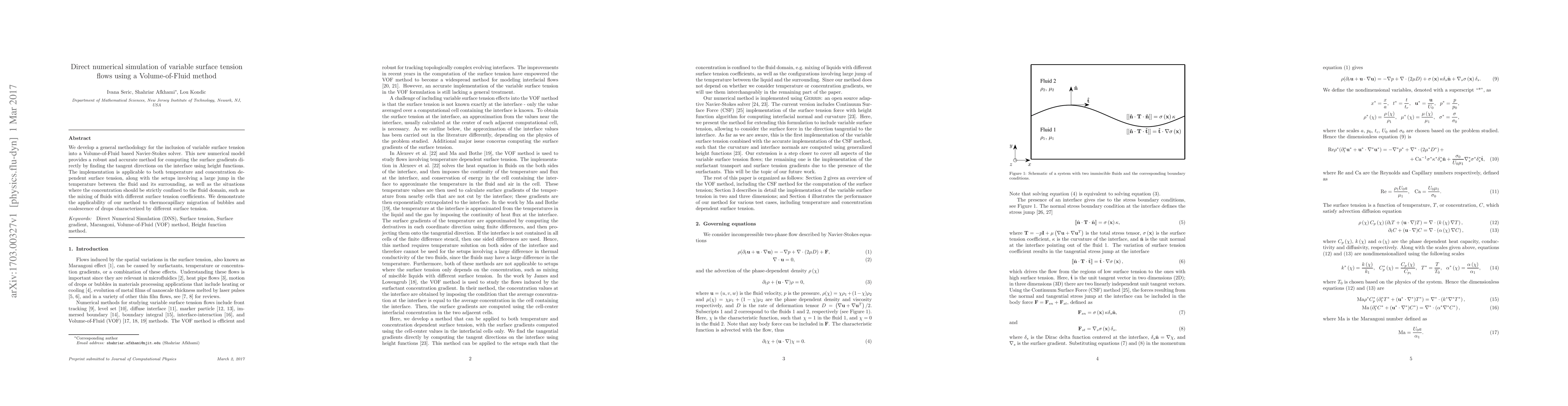 This paper presents a novel methodology for simulating variable surface tension flows using a Volume-of-Fluid method integrated into a Navier-Stokes solver. The approach accurately computes surface gradients and is applicable to temperature and concentration-dependent surface tension scenarios, demonstrated through thermocapillary bubble migration and drop coalescence.