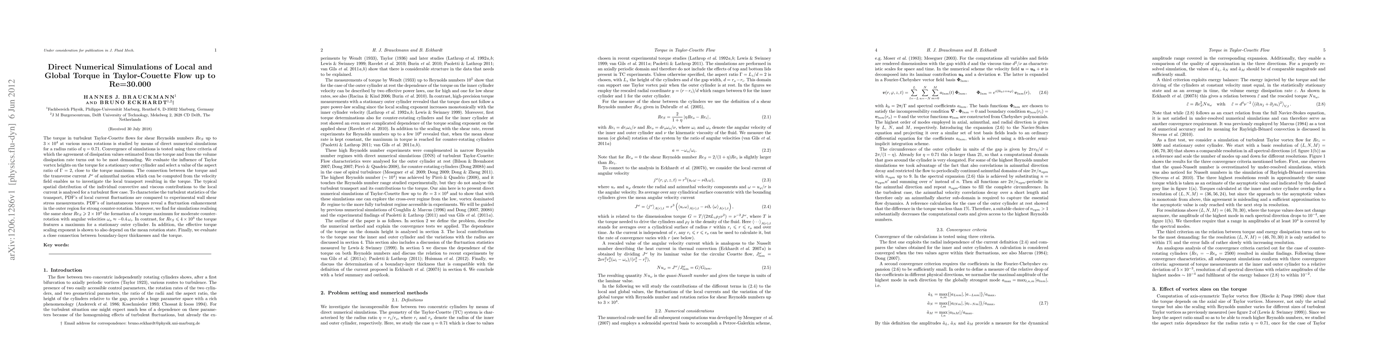 This research uses direct numerical simulations to study torque in turbulent Taylor-Couette flows up to Re=30,000. Key findings include the identification of torque maxima for moderate counter-rotation at high shear Reynolds numbers and a connection between torque and boundary-layer thicknesses.