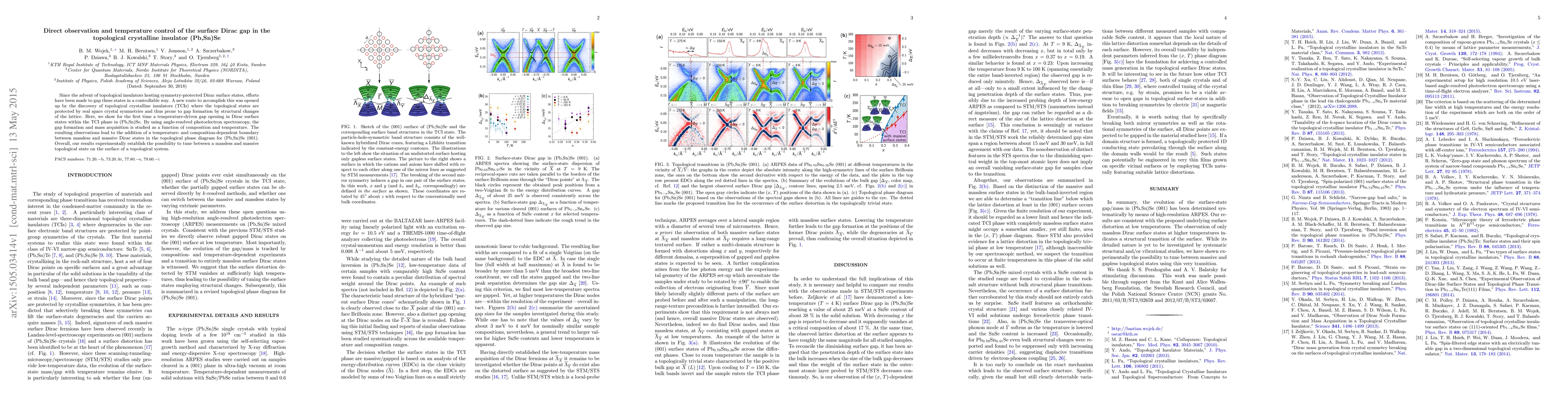 This paper demonstrates the first temperature-driven gap opening in Dirac surface states of the topological crystalline insulator (Pb,Sn)Se using angle-resolved photoelectron spectroscopy. The study reveals a tunable boundary between massless and massive Dirac states, showing the potential for controlling topological phases via temperature and composition.