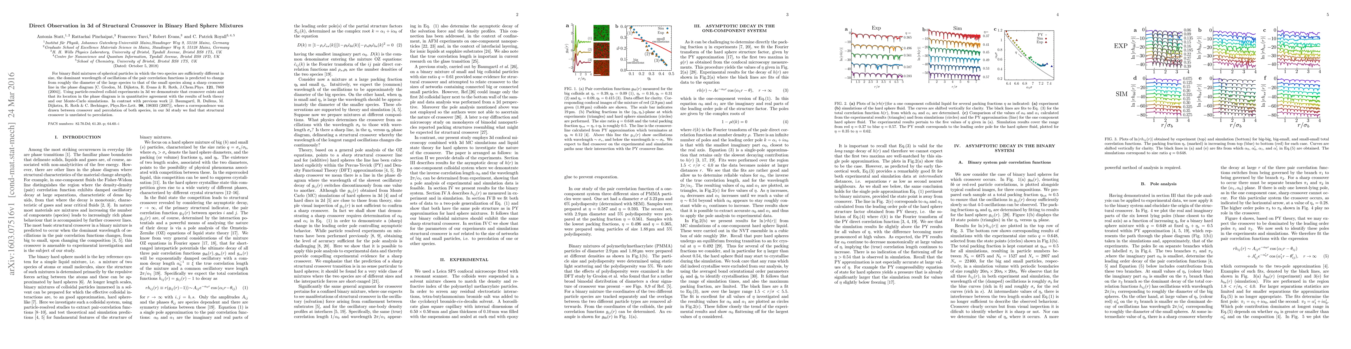 This research demonstrates the existence of a structural crossover in binary hard sphere mixtures using 3D colloid experiments, confirming theoretical predictions and Monte-Carlo simulations. Unlike previous studies, this work shows that the structural crossover does not correlate with percolation phenomena.