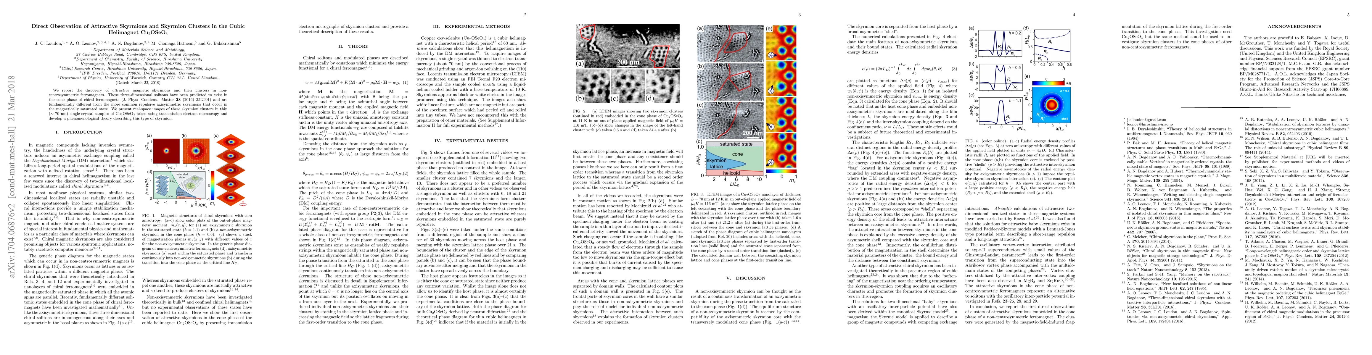 We report the discovery of attractive magnetic skyrmions and their clusters in non-centrosymmetric ferromagnets. These three-dimensional solitons have been predicted to exist in the cone phase of chiral ferromagnets (J. Phys: Condens. Matter 28 (2016) 35LT01) and are fundamentally different from the more common repulsive axisymmetric skyrmions that occur in the magnetically saturated state. We present real-space images of these skyrmion clusters in thin (~70 nm) single-crystal samples of Cu$_2$OSeO$_3$ taken using transmission electron microscopy and develop a phenomenological theory describing this type of skyrmion.