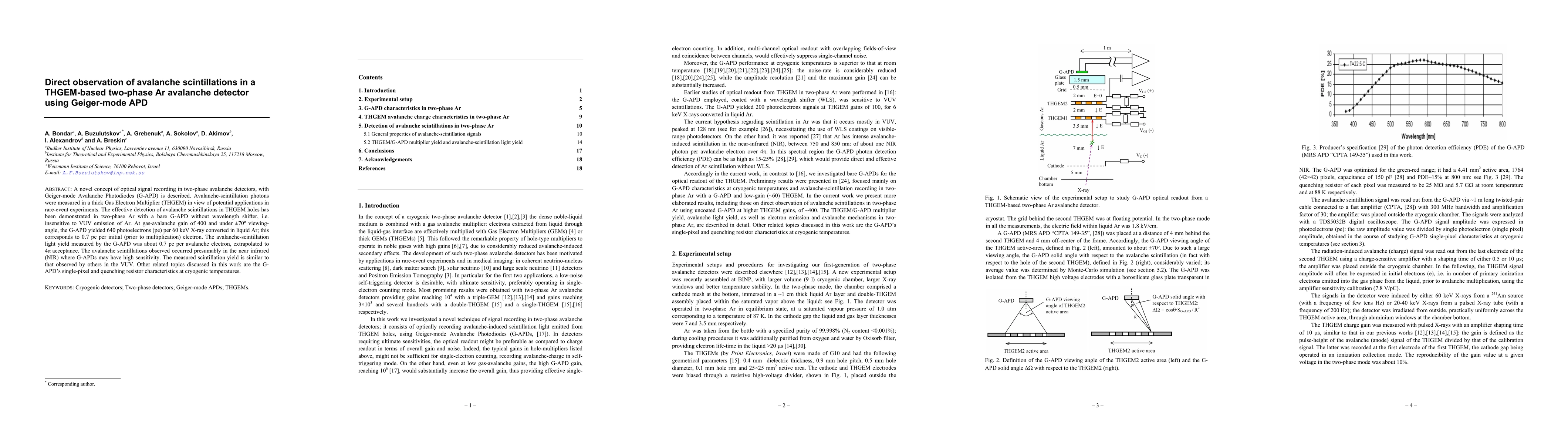 A novel concept of optical signal recording in two-phase avalanche detectors, with Geiger-mode Avalanche Photodiodes (G-APD) is described. Avalanche-scintillation photons were measured in a thick Gas Electron Multiplier (THGEM) in view of potential applications in rare-event experiments. The effective detection of avalanche scintillations in THGEM holes has been demonstrated in two-phase Ar with a bare G-APD without wavelength shifter, i.e. insensitive to VUV emission of Ar. At gas-avalanche gain of 400 and under \pm 70^\circ viewing-angle, the G-APD yielded 640 photoelectrons (pe) per 60 keV X-ray converted in liquid Ar; this corresponds to 0.7 pe per initial (prior to multiplication) electron. The avalanche-scintillation light yield measured by the G-APD was about 0.7 pe per avalanche electron, extrapolated to 4pi acceptance. The avalanche scintillations observed occurred presumably in the near infrared (NIR) where G-APDs may have high sensitivity. The measured scintillation yield is similar to that observed by others in the VUV. Other related topics discussed in this work are the G-APD's single-pixel and quenching resistor characteristics at cryogenic temperatures.