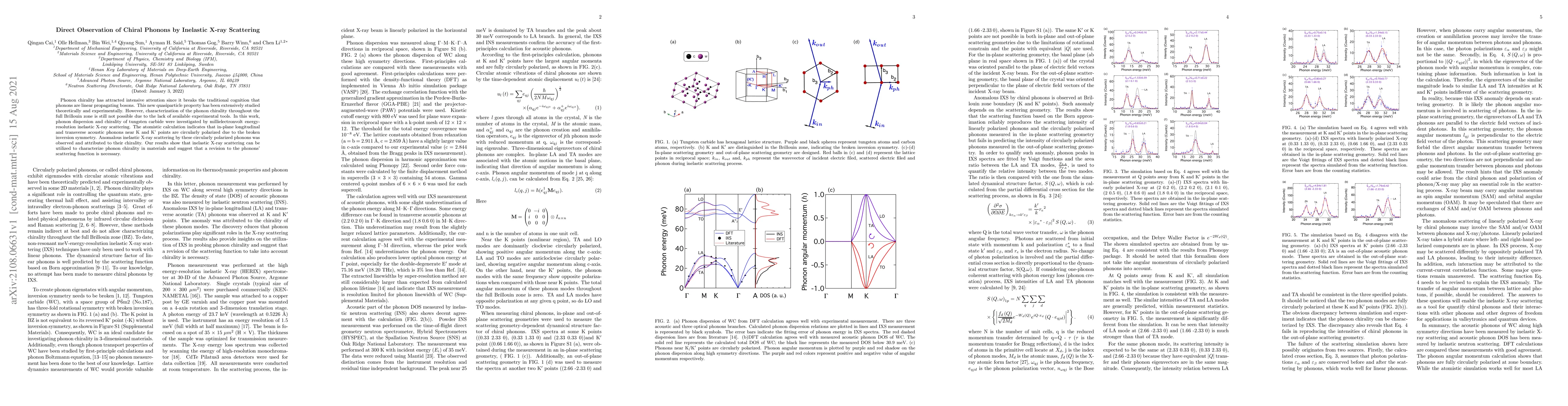 This paper reports the first direct observation of chiral phonons in tungsten carbide using inelastic X-ray scattering with millielectronvolt resolution, revealing circularly polarized phonons near K and K' points due to broken inversion symmetry. The findings suggest a need for revising the phonon scattering function to account for phonon chirality.