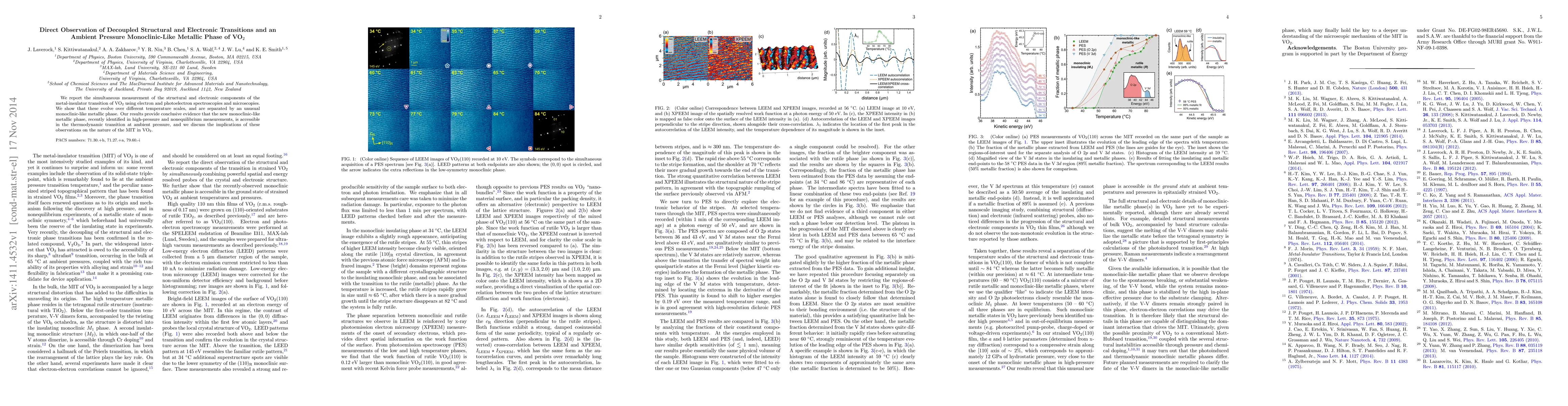 This paper reports on the observation of decoupled structural and electronic transitions in VO$_2$ during its metal-insulator transition, revealing an ambient pressure monoclinic-like metallic phase. The study uses electron and photoelectron spectroscopies and microscopies to show that these transitions occur on different temperature scales, providing new insights into the nature of the transition in VO$_2$.