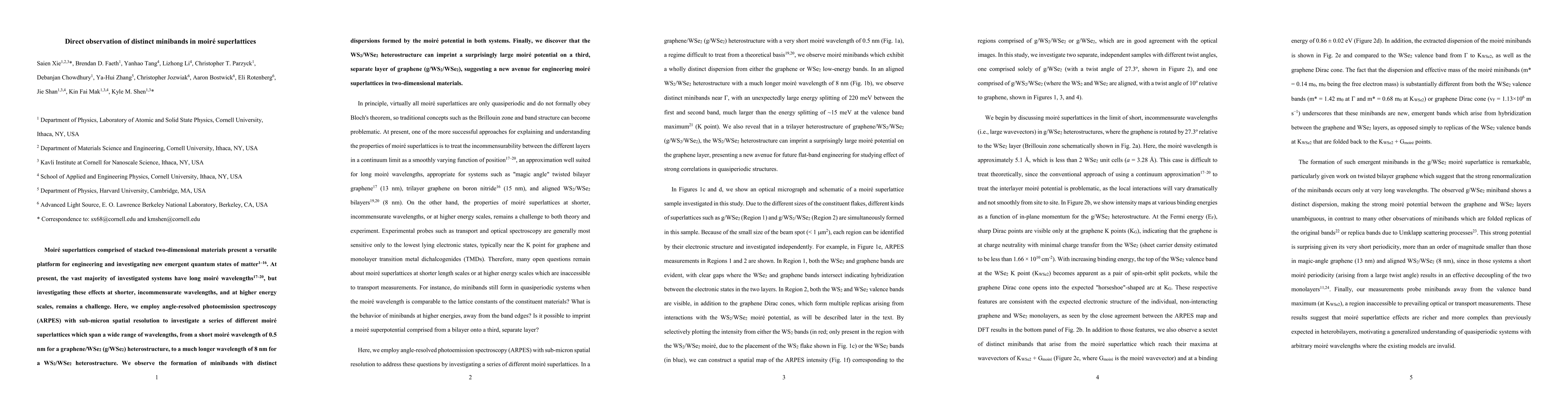 This study uses angle-resolved photoemission spectroscopy to observe distinct minibands in moiré superlattices of different stacking configurations, revealing their unique quantum states and potential for new material engineering. The research highlights the formation of minibands in both short and long moiré wavelength systems, and discovers a large moiré potential transfer to a third graphene layer.