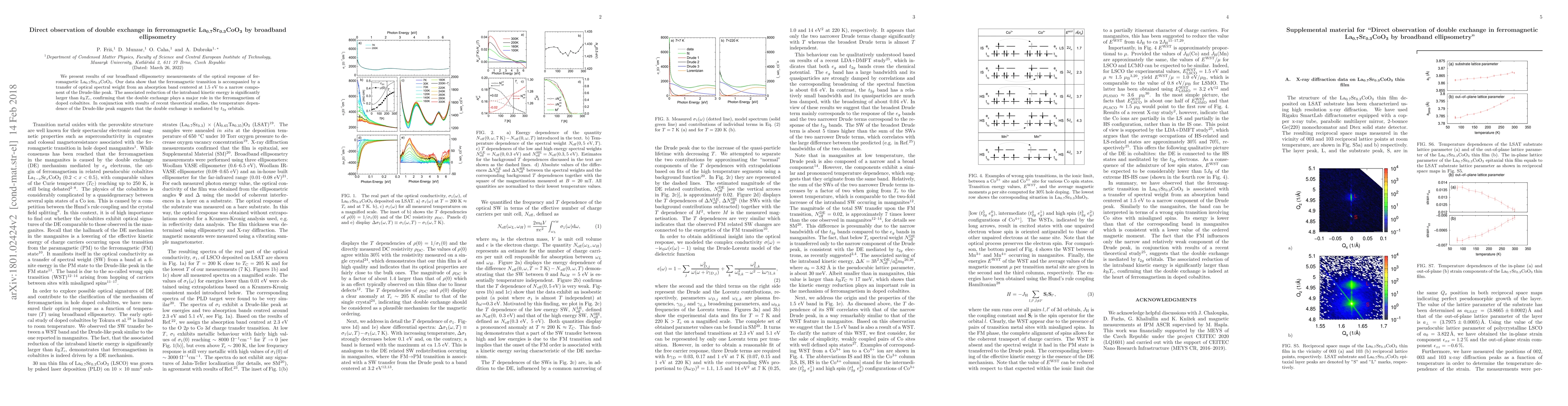 We present results of our broadband ellipsometry measurements of the optical response of ferromagnetic La$_{0.7}$Sr$_{0.3}$CoO$_3$. Our data show that the ferromagnetic transition is accompanied by a transfer of optical spectral weight from an absorption band centered at 1.5 eV to a narrow component of the Drude-like peak. The associated reduction of the intraband kinetic energy is significantly larger than $k_{\rm B}T_c$, confirming that the double exchange plays a major role in the ferromagnetism of doped cobaltites. In conjunction with results of recent theoretical studies, the temperature dependence of the Drude-like peak suggests that the double exchange is mediated by $t_{2g}$ orbitals.