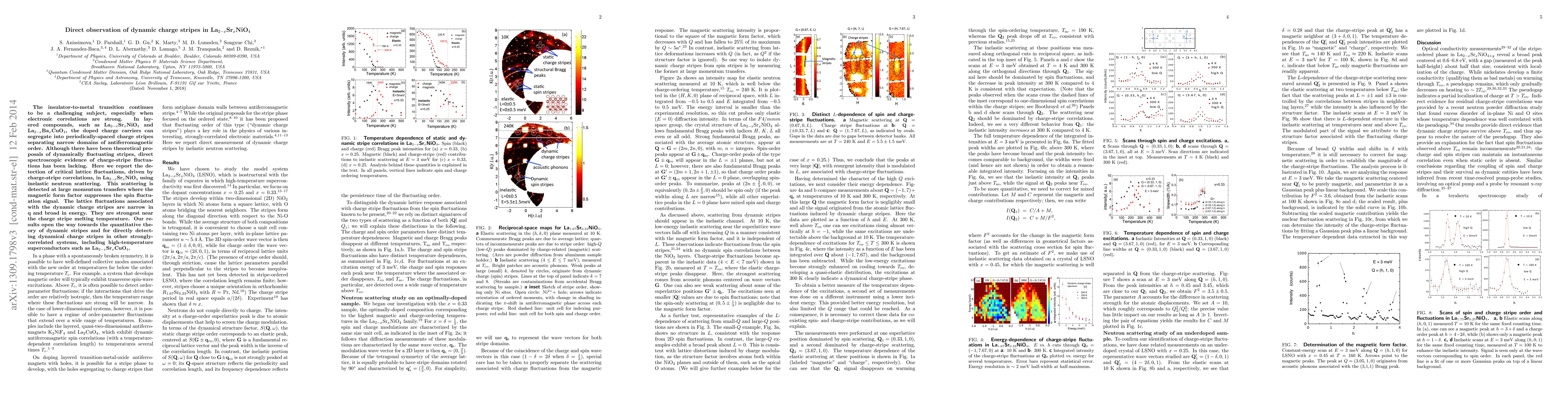 This paper reports the first direct spectroscopic evidence of dynamically fluctuating charge stripes in La2-xSrxNiO4 using inelastic neutron scattering, revealing lattice fluctuations driven by charge-stripe correlations strongest near the melting temperature. This discovery paves the way for quantitative theories of dynamic stripes and their detection in other strongly-correlated systems.