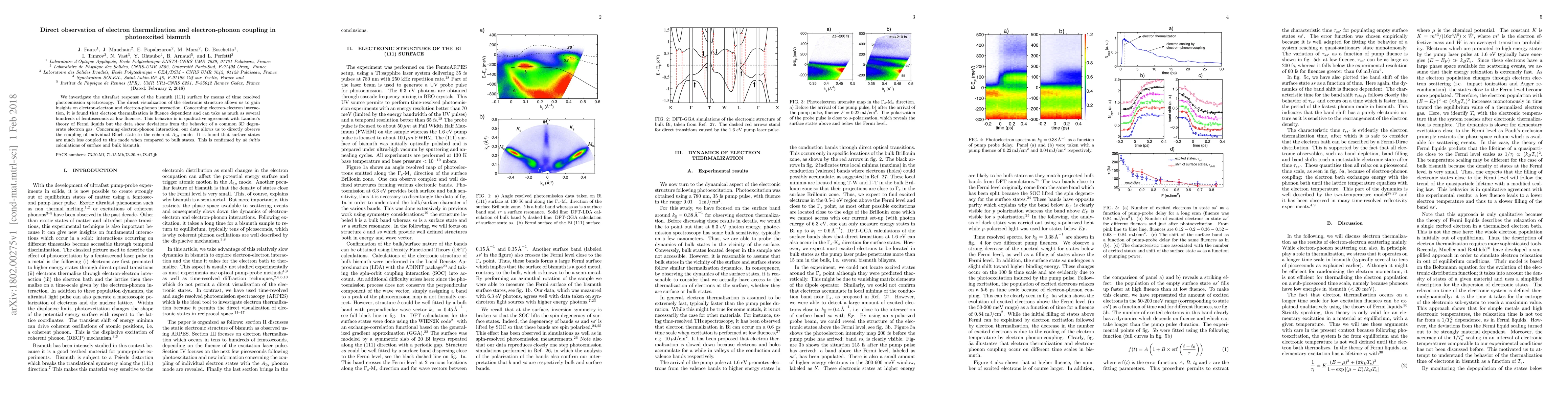 We investigate the ultrafast response of the bismuth (111) surface by means of time resolved photoemission spectroscopy. The direct visualization of the electronic structure allows us to gain insights on electron-electron and electron-phonon interaction. Concerning electron-electron interaction, it is found that electron thermalization is fluence dependent and can take as much as several hundreds of femtoseconds at low fluences. This behavior is in qualitative agreement with Landau's theory of Fermi liquids but the data show deviations from the behavior of a common 3D degenerate electron gas. Concerning electron-phonon interaction, our data allows us to directly observe the coupling of individual Bloch state to the coherent $A_{1g}$ mode. It is found that surface states are much less coupled to this mode when compared to bulk states. This is confirmed by \textit{ab initio} calculations of surface and bulk bismuth.