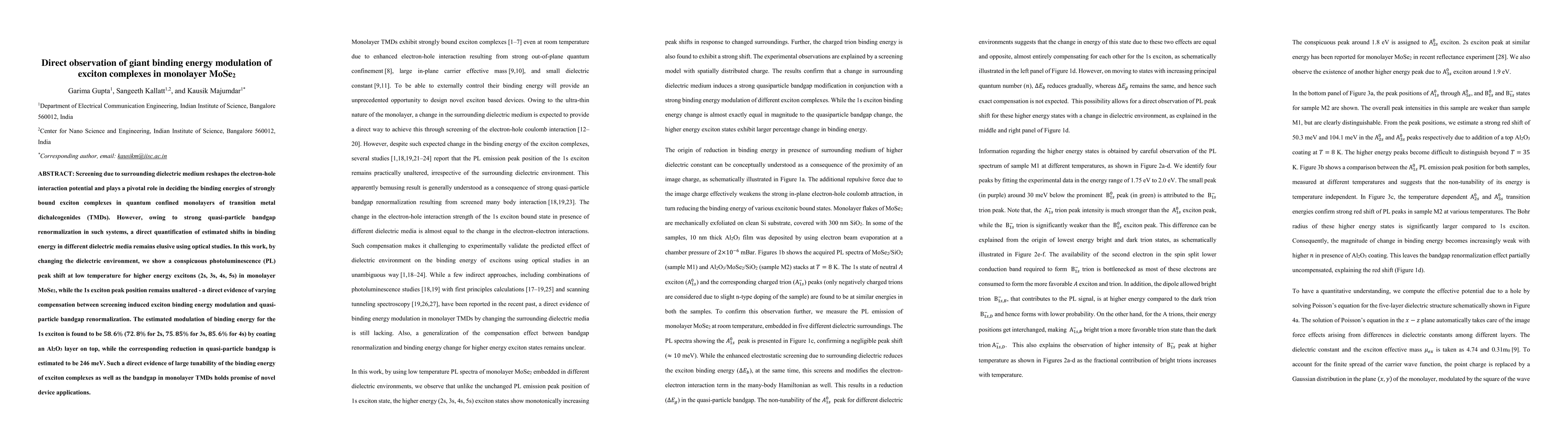 Screening due to surrounding dielectric medium reshapes the electron-hole interaction potential and plays a pivotal role in deciding the binding energies of strongly bound exciton complexes in quantum confined monolayers of transition metal dichalcogenides (TMDs). However, owing to strong quasi-particle bandgap renormalization in such systems, a direct quantification of estimated shifts in binding energy in different dielectric media remains elusive using optical studies. In this work, by changing the dielectric environment, we show a conspicuous photoluminescence (PL) peak shift at low temperature for higher energy excitons (2s, 3s, 4s, 5s) in monolayer MoSe$_2$, while the 1s exciton peak position remains unaltered - a direct evidence of varying compensation between screening induced exciton binding energy modulation and quasi-particle bandgap renormalization. The estimated modulation of binding energy for the 1s exciton is found to be 58.6% (70.5% for 2s, 78.9% for 3s, 85% for 4s) by coating an Al$_2$O$_3$ layer on top, while the corresponding reduction in quasi-particle bandgap is estimated to be 248 meV. Such a direct evidence of large tunability of the binding energy of exciton complexes as well as the bandgap in monolayer TMDs holds promise of novel device applications.