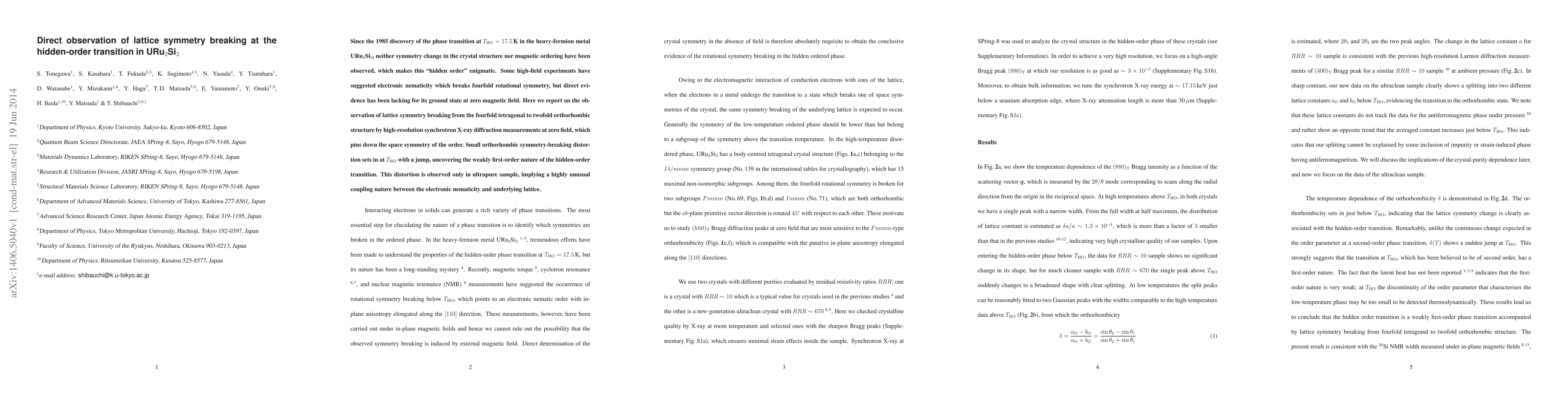 Researchers directly observe lattice symmetry breaking at the hidden-order transition in URu2Si2 using high-resolution synchrotron X-ray diffraction measurements, revealing a weakly first-order nature of the phase change.