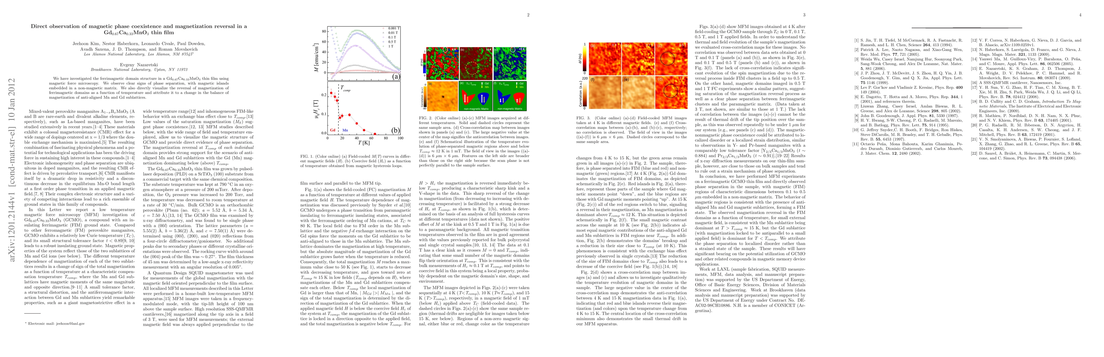 We have investigated the ferrimagnetic domain structure in a Gd$_{0.67}$Ca$_{0.33}$MnO$_{3}$ thin film using magnetic force microscopy. We observe clear signs of phase separation, with magnetic islands embedded in a non-magnetic matrix. We also directly visualize the reversal of magnetization of ferrimagnetic domains as a function of temperature and attribute it to a change in the balance of magnetization of anti-aligned Mn and Gd sublattices.