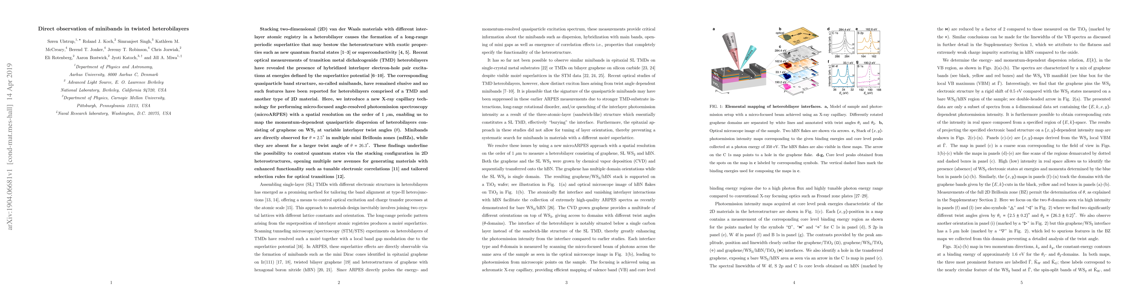 Stacking two-dimensional (2D) van der Waals materials with different interlayer atomic registry in a heterobilayer causes the formation of a long-range periodic superlattice that may bestow the heterostructure with exotic properties such as new quantum fractal states [1-3] or superconductivity [4, 5]. Recent optical measurements of transition metal dichalcogenide (TMD) heterobilayers have revealed the presence of hybridized interlayer electron-hole pair excitations at energies defined by the superlattice potential [6-10]. The corresponding quasiparticle band structure, so-called minibands, have remained elusive and no such features have been reported for heterobilayers comprised of a TMD and another type of 2D material. Here, we introduce a new X-ray capillary technology for performing micro-focused angle-resolved photoemission spectroscopy (microARPES) with a spatial resolution on the order of 1 $\mu$m, enabling us to map the momentum-dependent quasiparticle dispersion of heterobilayers consisting of graphene on WS$_2$ at variable interlayer twist angles ($\theta$). Minibands are directly observed for $\theta = 2.5^{\circ}$ in multiple mini Brillouin zones (mBZs), while they are absent for a larger twist angle of $\theta = 26.3^{\circ}$. These findings underline the possibility to control quantum states via the stacking configuration in 2D heterostructures, opening multiple new avenues for generating materials with enhanced functionality such as tunable electronic correlations [11] and tailored selection rules for optical transitions [12].