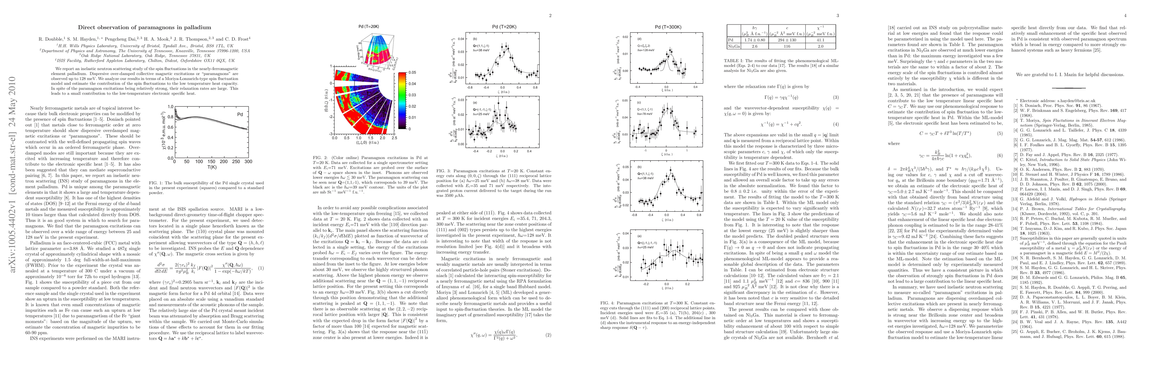 Researchers have observed paramagnons in palladium using inelastic neutron scattering, finding strong spin fluctuations but rapid relaxation rates that contribute little to low-temperature heat capacity.