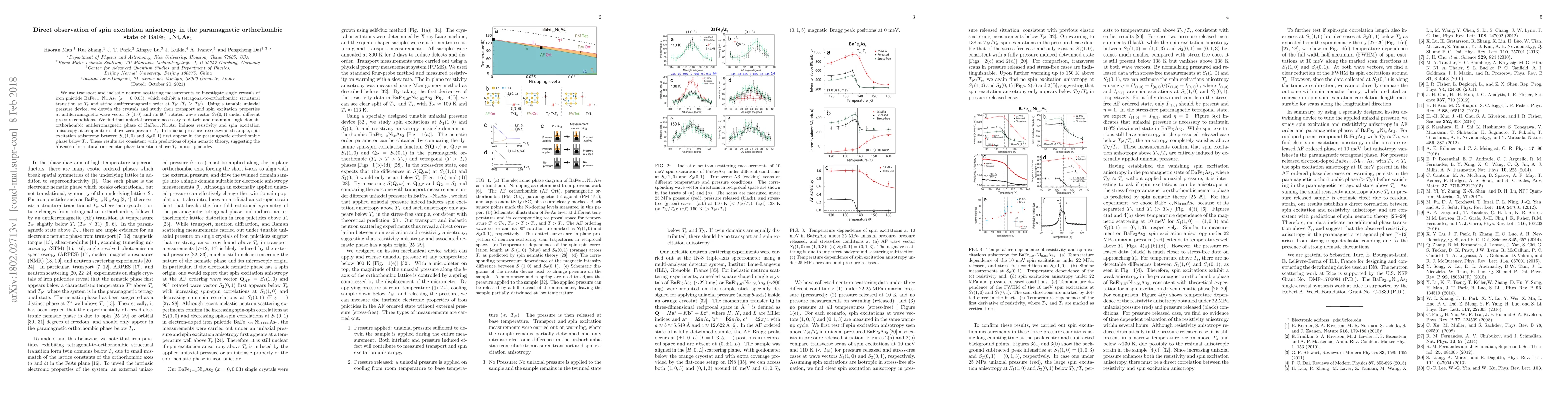 We use transport and inelastic neutron scattering measurements to investigate single crystals of iron pnictide BaFe$_{2-x}$Ni$_{x}$As$_{2}$ ($x=0,0.03$), which exhibit a tetragonal-to-orthorhombic structural transition at $T_s$ and stripe antiferromagnetic order at $T_N$ ($T_s\geq T_N$). Using a tunable uniaxial pressure device, we detwin the crystals and study their transport and spin excitation properties at antiferromagnetic wave vector $S_1(1,0)$ and its 90$^\circ$ rotated wave vector $S_2(0,1)$ under different pressure conditions. We find that uniaxial pressure necessary to detwin and maintain single domain orthorhombic antiferromagnetic phase of BaFe$_{2-x}$Ni$_{x}$As$_{2}$ induces resistivity and spin excitation anisotropy at temperatures above zero pressure $T_s$. In uniaxial pressure-free detwinned sample, spin excitation anisotropy between $S_1(1,0)$ and $S_2(0,1)$ first appear in the paramagnetic orthorhombic phase below $T_s$. These results are consistent with predictions of spin nematic theory, suggesting the absence of structural or nematic phase transition above $T_s$ in iron pnictides.